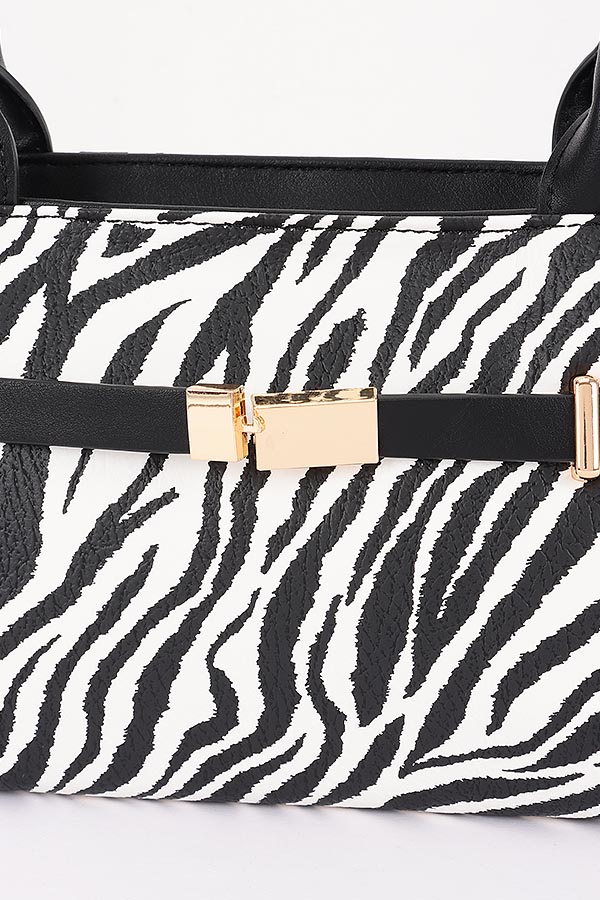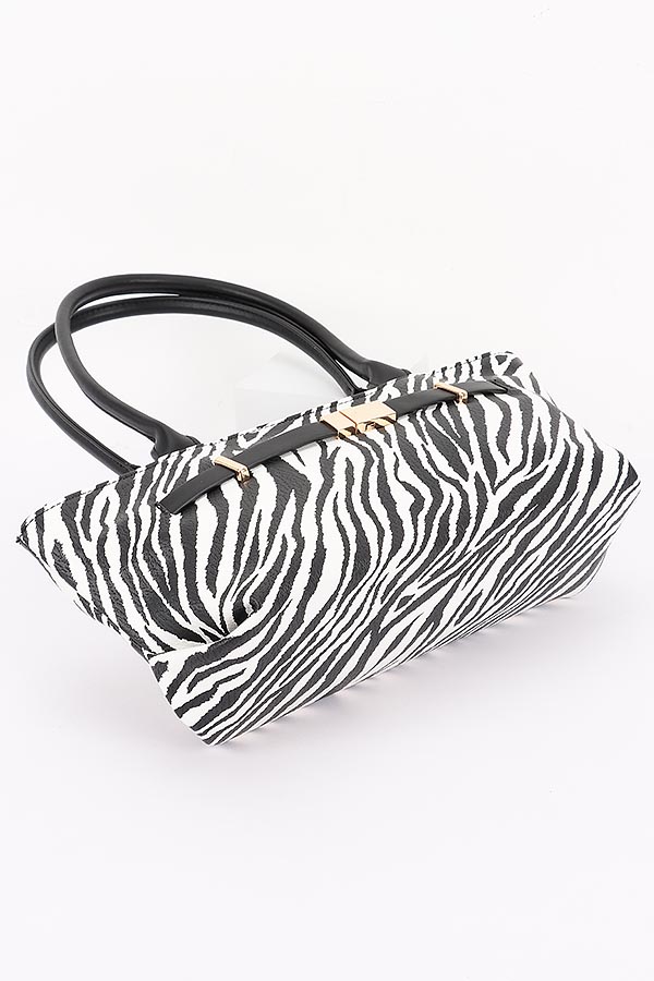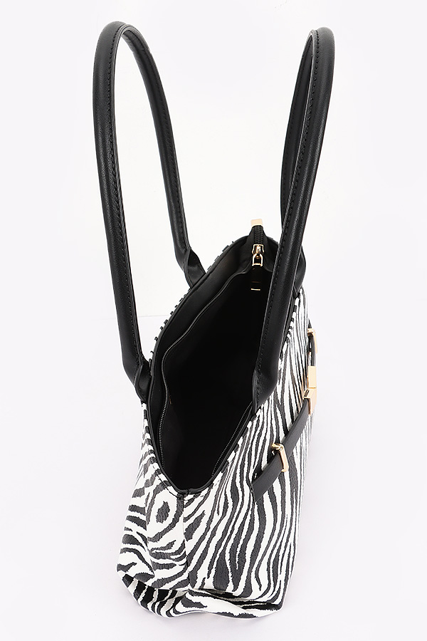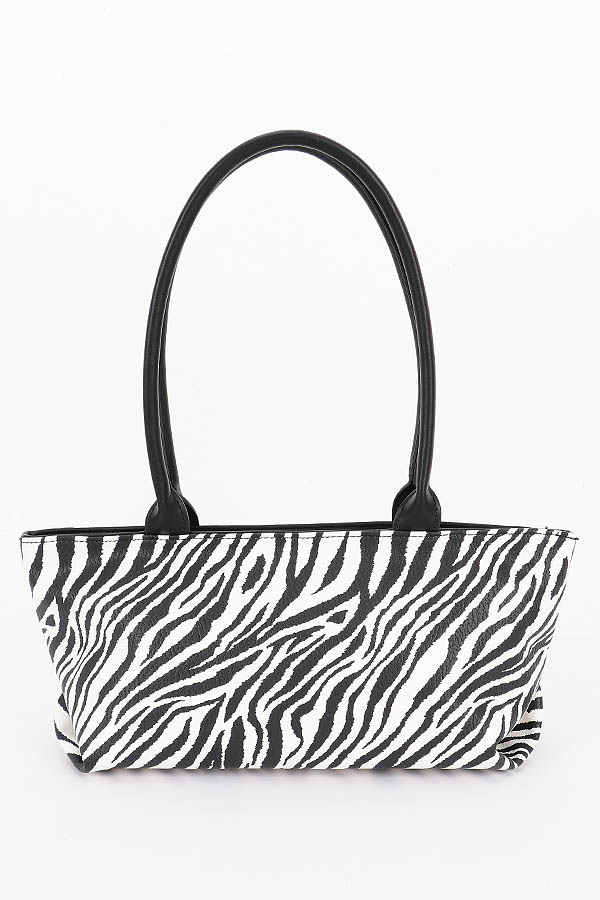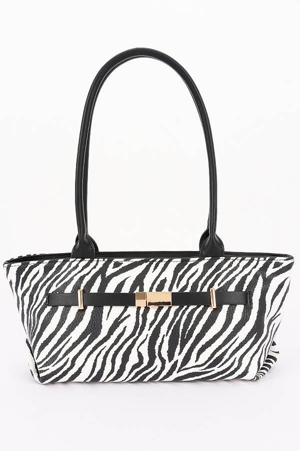 - * This Zebra Print Faux Leather Shoulder Bag from H&D Accessories features a bold zebra print design on a faux leather body. It comes with sleek handles and a decorative front detail, giving it a stylish and eye - catching appearance.