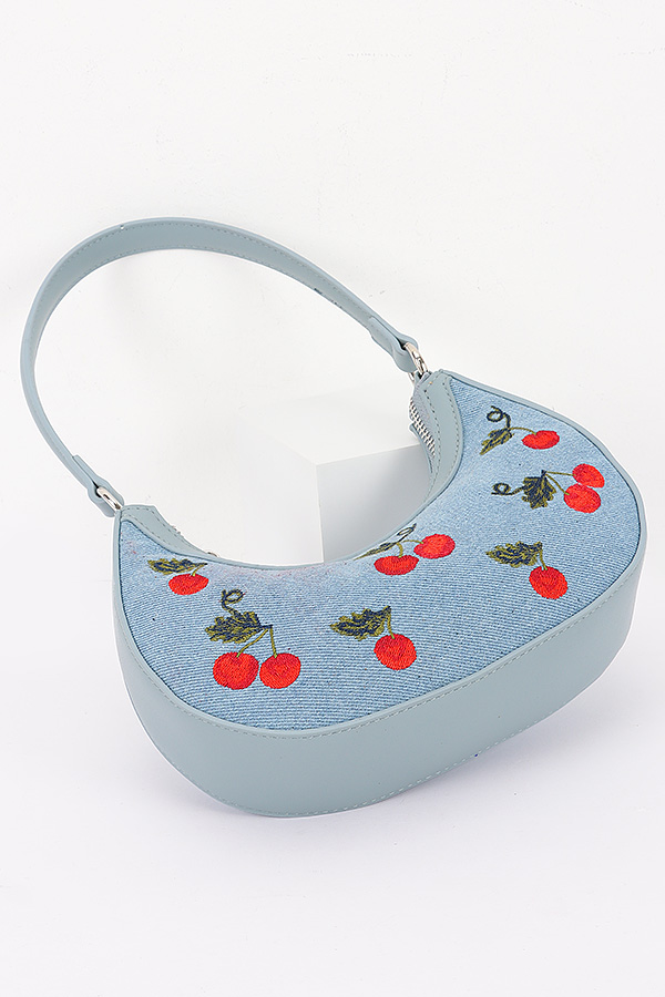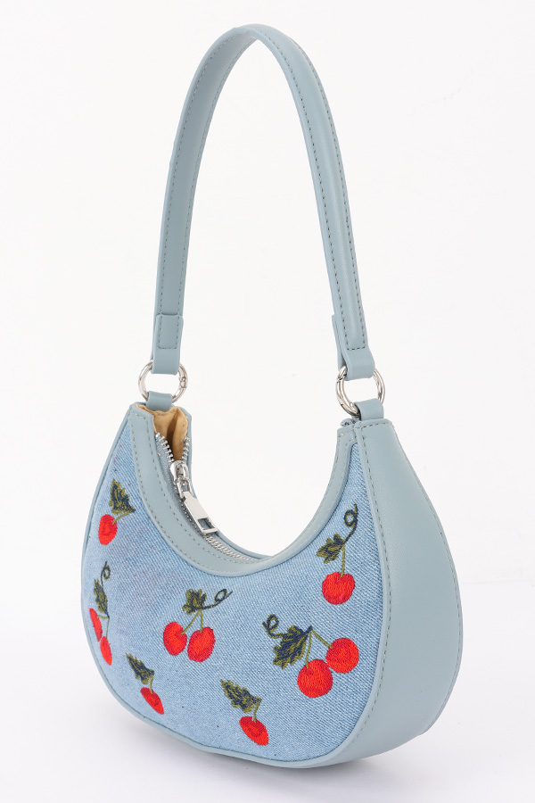 • * Embroidery Cherry Denim Shoulder Bag