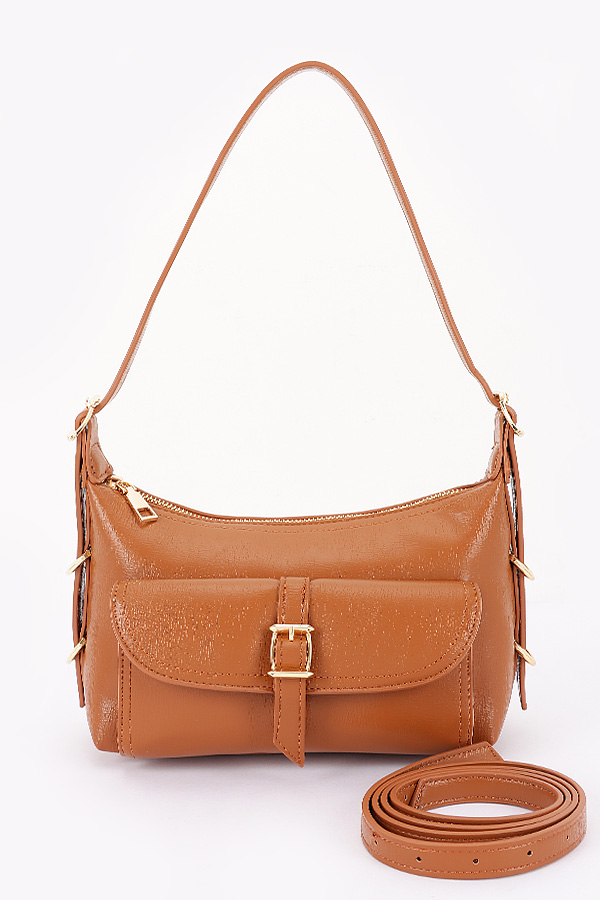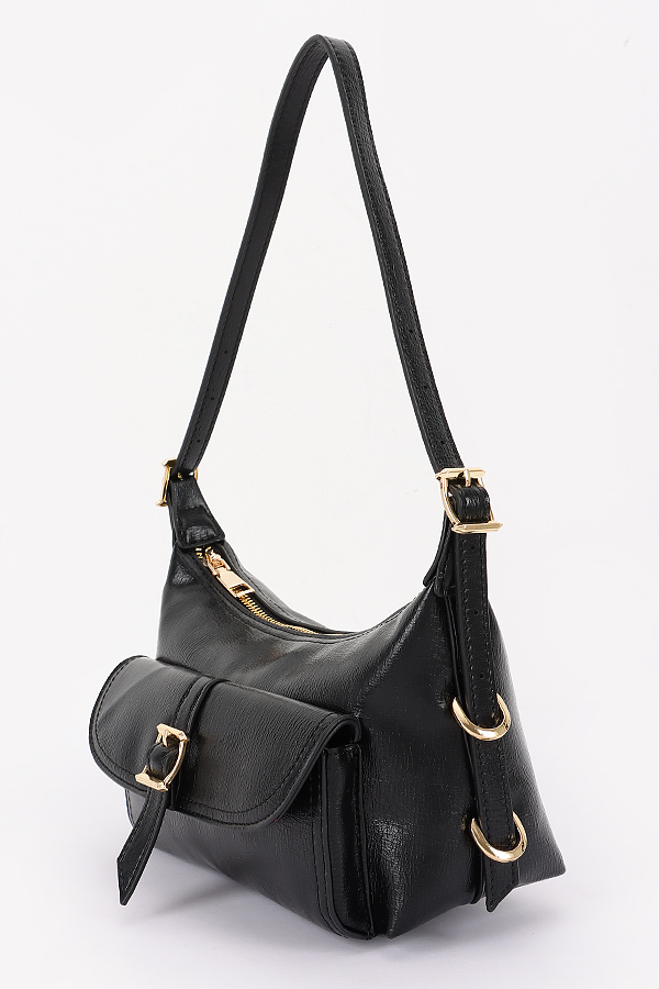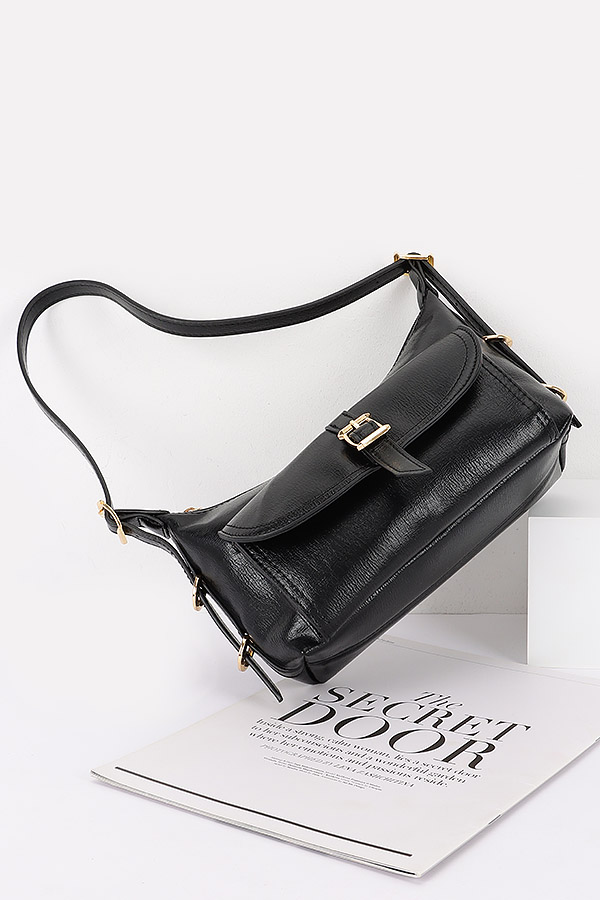 - * This is a Vegan Leather Multi Metal Shoulder Bag from H&D Accessories. It has a sleek and structured design with a main compartment and a front flap pocket secured by a metal buckle. The bag comes with an adjustable shoulder strap and an extra detachable strap, offering versatile carrying options. It's perfect for daily use, whether you're heading to work, running errands around town, or going out for a casual dinner, as it can hold all your essentials while adding a touch of sophistication to your outfit.