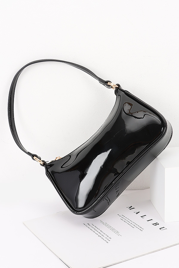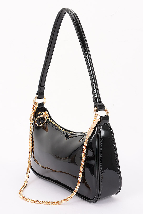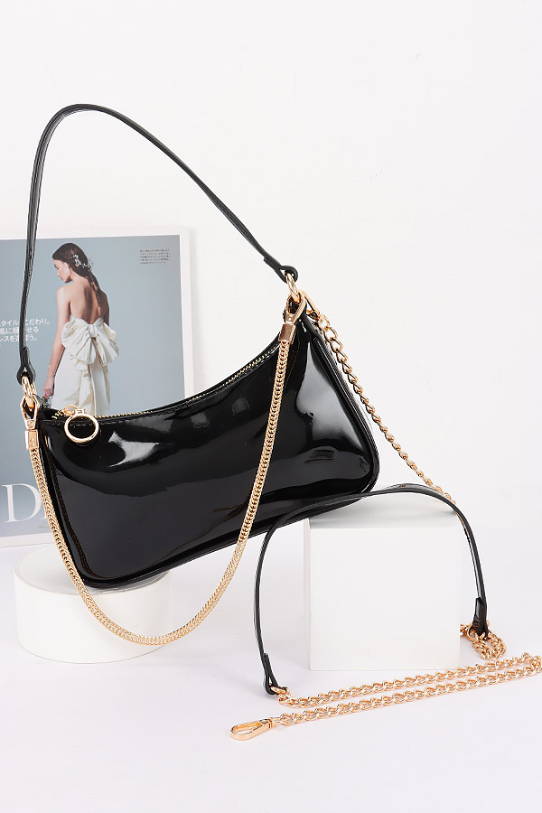 • * This Patent Vegan Leather Chain Shoulder Bag from H&D Accessories features a glossy patent vegan leather design with a stylish chain strap. It has a sleek and modern appearance, giving off an elegant and chic vibe.Ideal for adding a touch of sophistication to everyday outfits, whether going to work, meeting friends, or running errands.