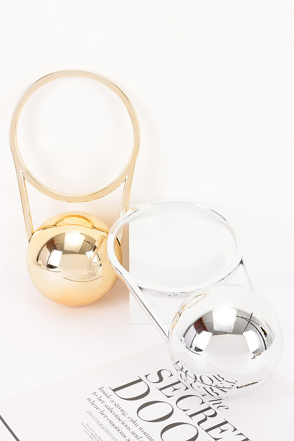 - * This is a Metallic Acrylic Clutch from H&D Accessories. It has a striking spherical shape with a shiny metallic finish and is paired with a large, circular top handle, creating a bold and avant - garde look. The clutch is ideal for holding small essentials like a lipstick, keys, and a credit card. You can carry it when attending a high - end gala, a fashion - forward party, or a sophisticated art exhibition, as its unique and glamorous design is sure to make a statement and add a touch of luxury to your ensemble.