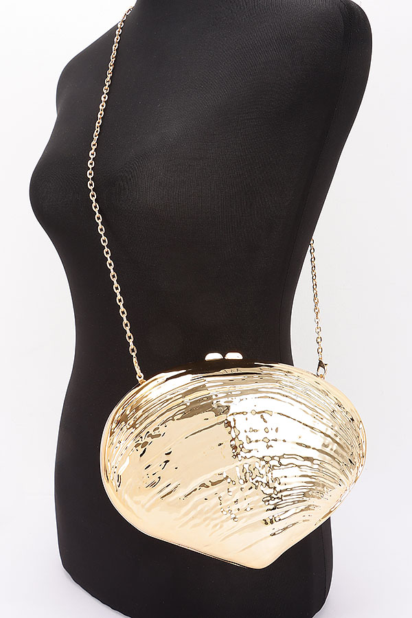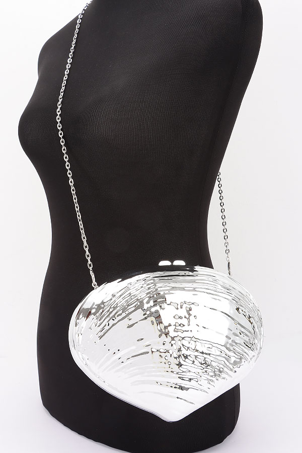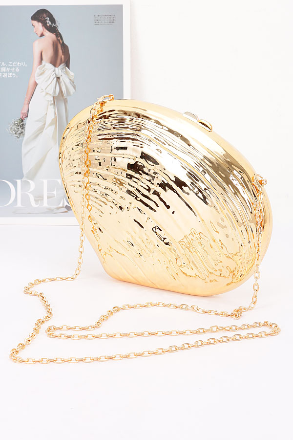 - * This is a Metallic Acrylic Clutch from H&D Accessories. It has a unique shell - like shape with a textured, shiny metallic surface and comes with a delicate chain strap, allowing it to be carried as a crossbody or held as a clutch. The clutch is perfect for holding small essentials like a lipstick, keys, and a credit card. You can take it with you when attending a beach wedding, a summer gala, or a fancy dinner party by the coast. Its distinctive design, resembling a beautiful shell, will add a touch of seaside charm and elegance to your outfit, making you stand out in any elegant occasion.