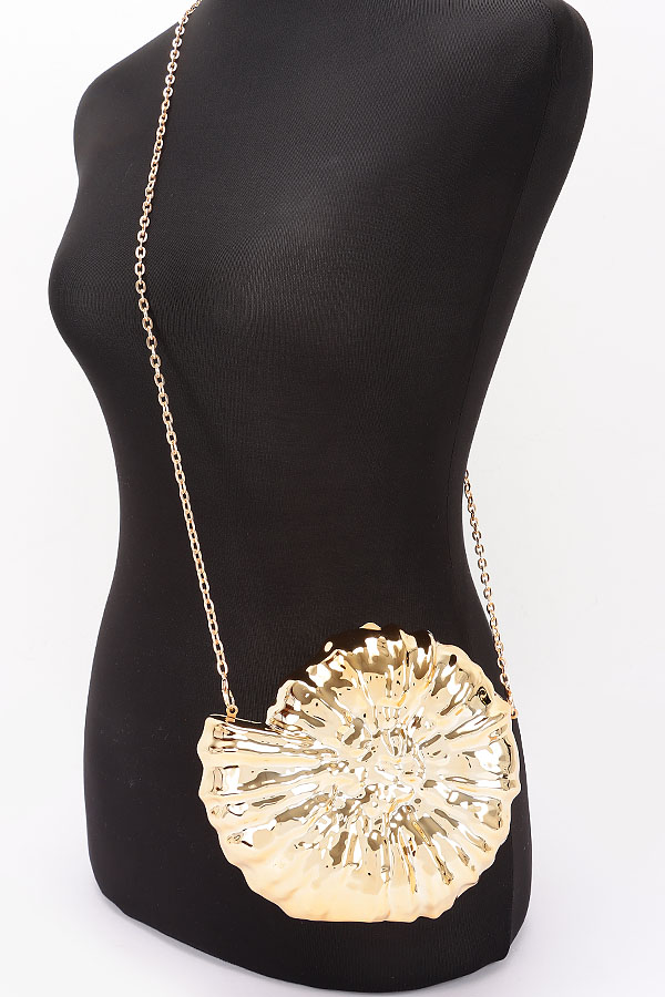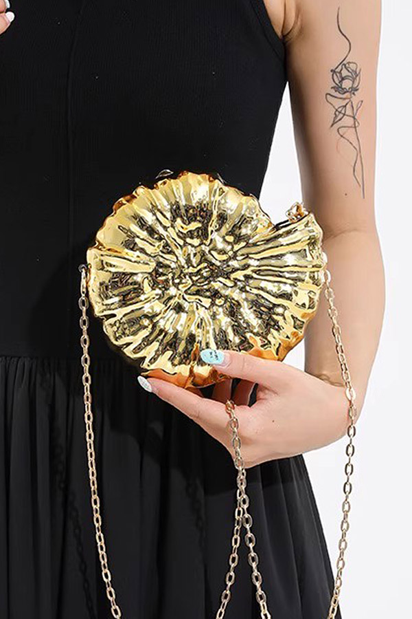 - * This Metallic Acrylic Clutch from H&D Accessories features a unique, textured design with a chain strap. It has an eye - catching and stylish appearance, giving off a trendy and artistic vibe.Ideal for complementing evening gowns or cocktail dresses at events like galas, weddings, or award ceremonies, adding a touch of glamour.