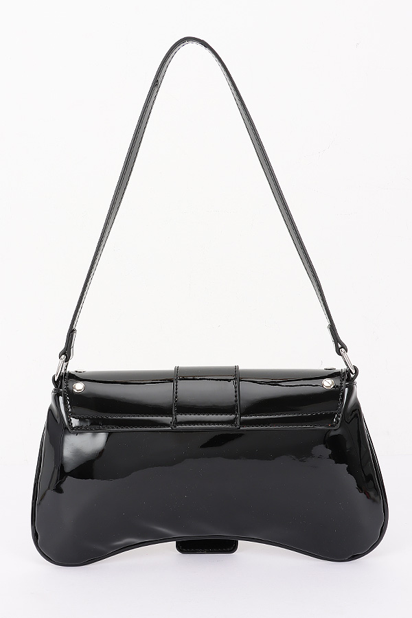 - * Patent Vegan Leather Studded Baguette Bag
