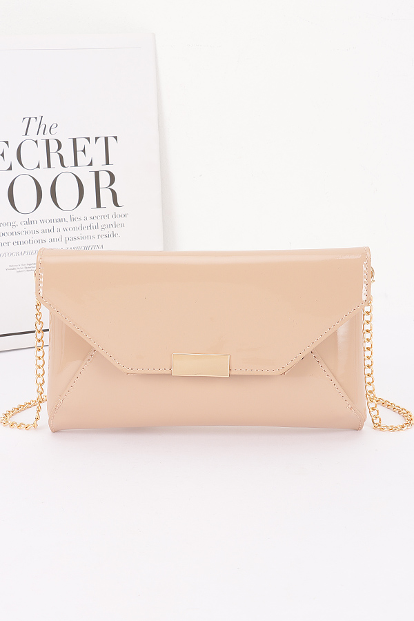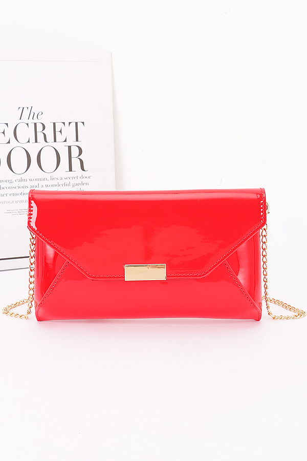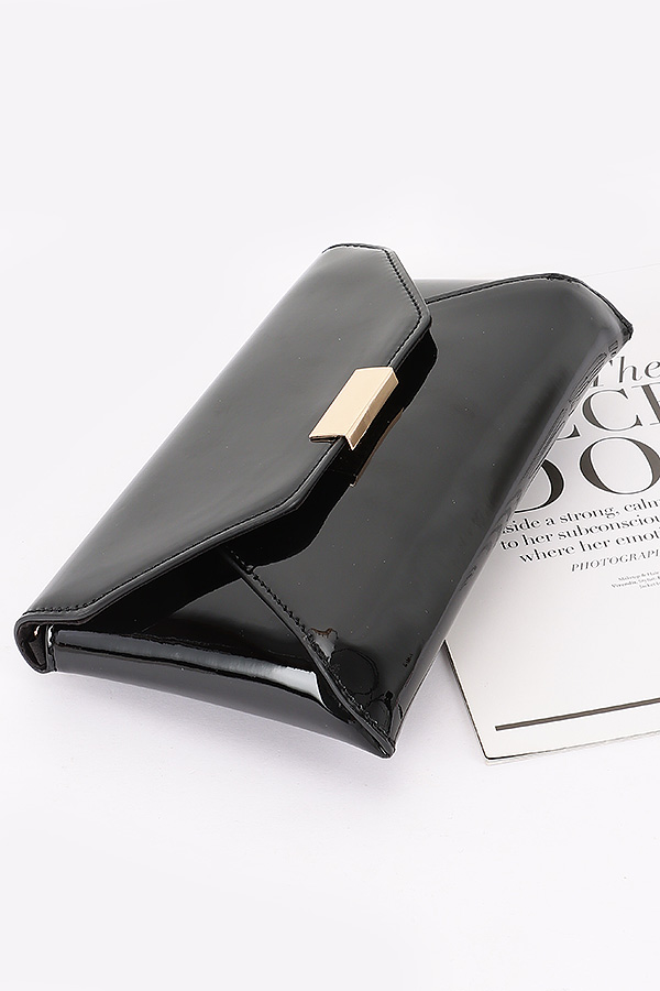 - * Patent Faux Leather Envelope Clutch