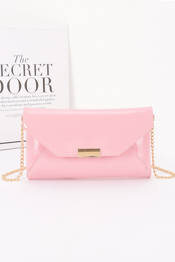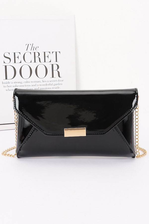 - * This elegant Patent Faux Leather Envelope Clutch from H&D Accessories showcases a sleek envelope silhouette with a polished metal accent and a delicate gold-tone chain strap. It’s designed to be both a sophisticated clutch for hand-carrying and a chic crossbody bag for hands-free convenience. Perfect for a romantic dinner date when paired with a little black dress, or a formal cocktail party to complement your evening gown, this clutch adds a touch of refinement to any upscale occasion. Its patent faux leather material gives it a glossy, luxurious look, making it an ideal accessory for fashion lovers who want to elevate their ensemble with a blend of style and practicality.