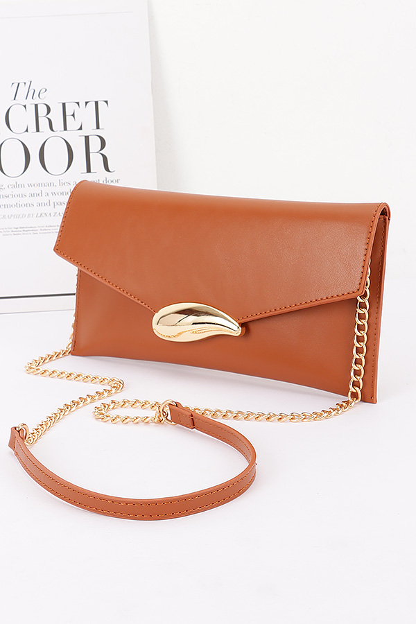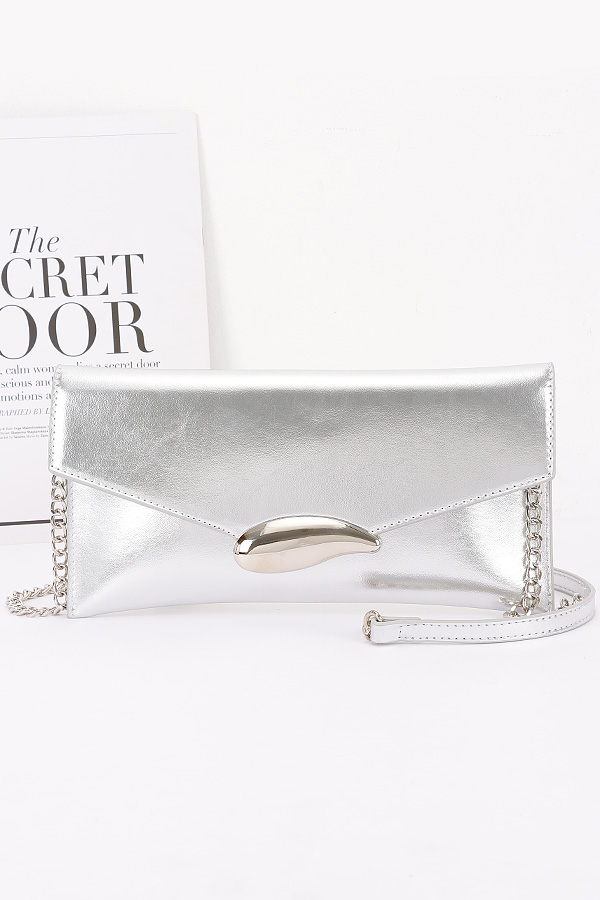 - * This Vegan Leather Envelope Clutch Bag from H&D Accessories features an envelope - shaped design with a distinctive metal clasp and a chain strap. It has an elegant and modern appearance, giving it a sophisticated and stylish vibe.