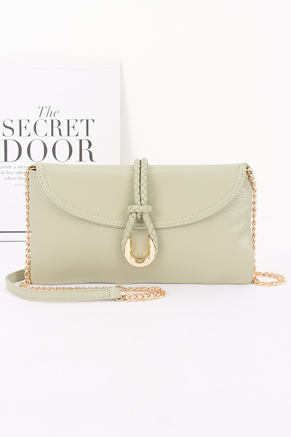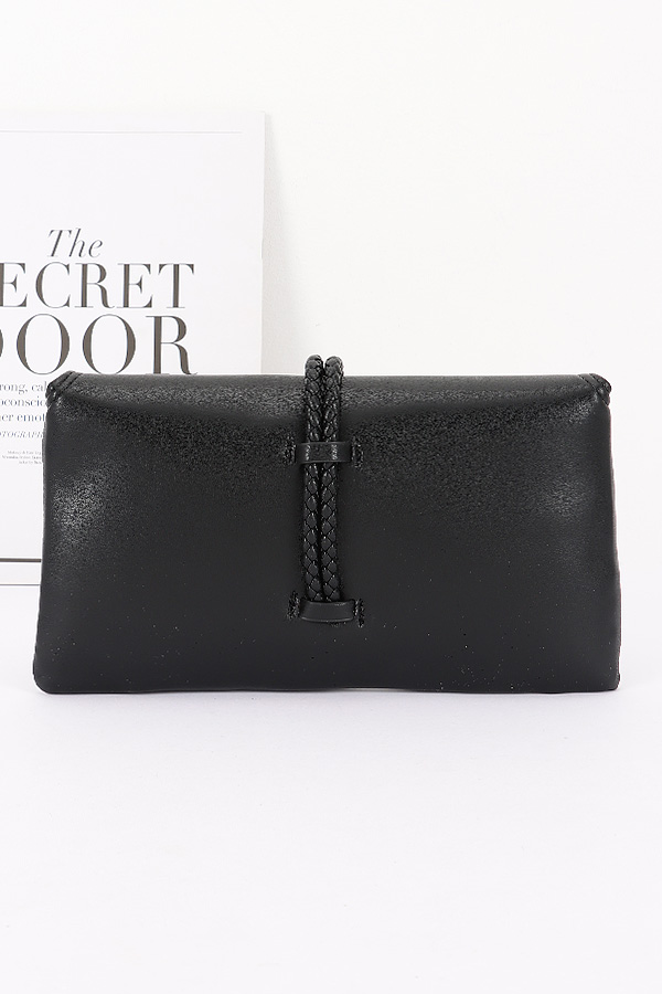 - * This Vegan Leather Envelope Clutch Bag from H&D Accessories features an envelope - style design with a braided knot detail and a gold - toned accent. It has a chic and versatile appearance, giving off an elegant and modern vibe.Ideal for pairing with evening dresses or tailored suits at weddings, galas, or business dinners, adding a touch of sophistication.