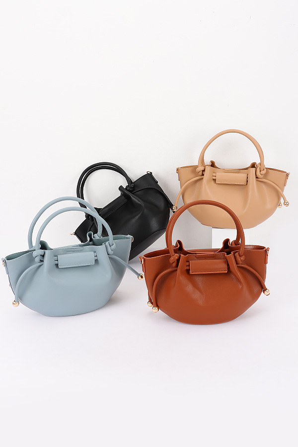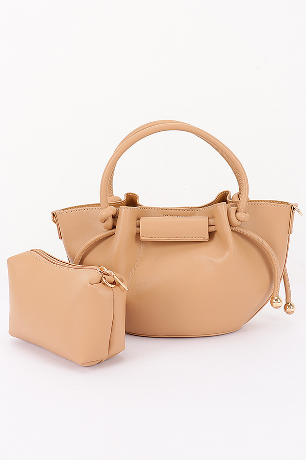 - * Vegan Leather Tote with Drawstring Detail