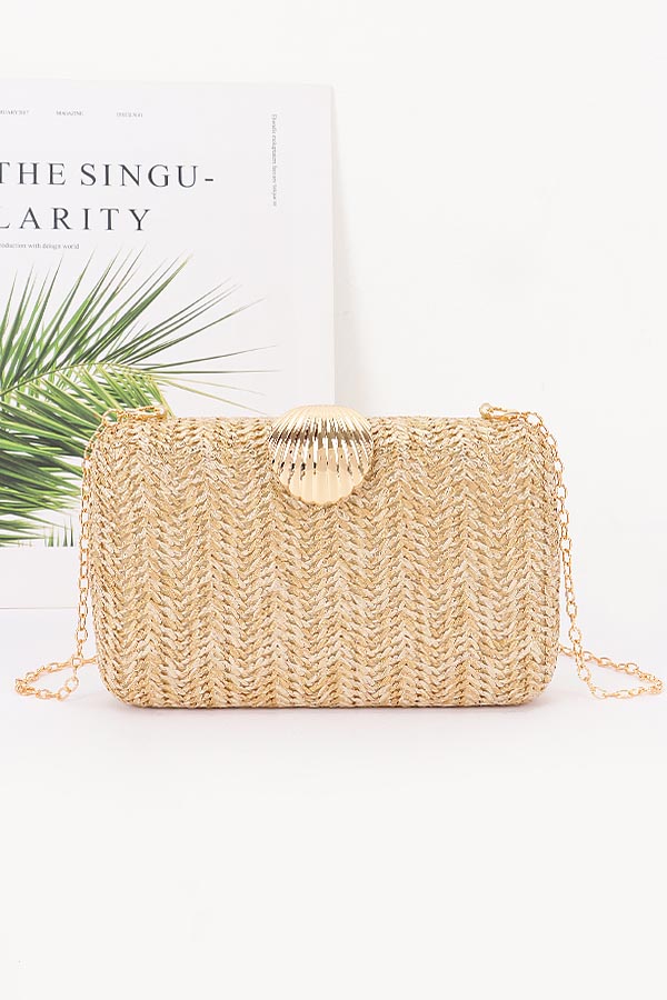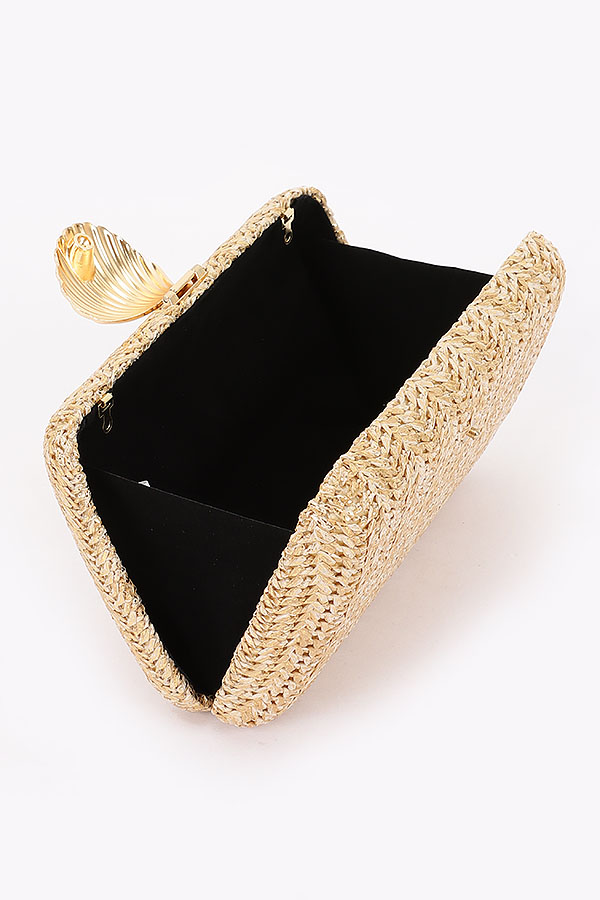 • * Woven Clutch with Shell Accent and Chain Strap