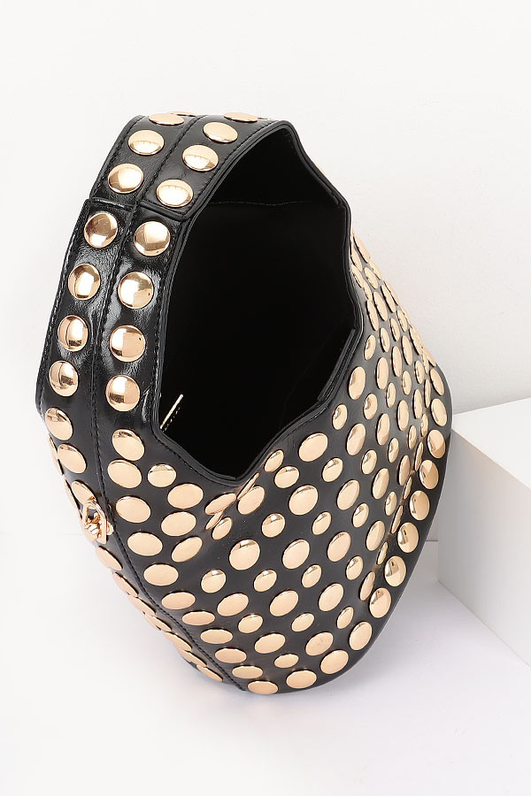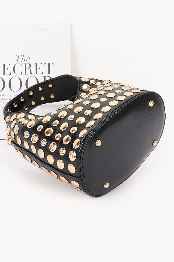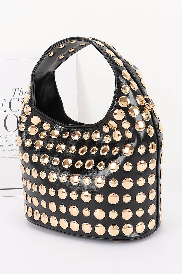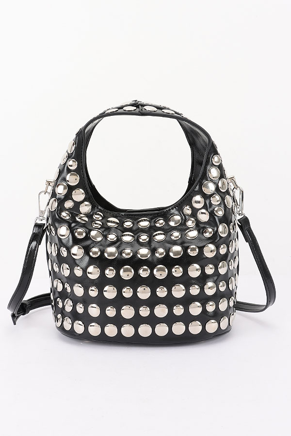 - * This is a Vegan Leather Metal Studded Hobo Bag from H&D Accessories, designed with a slouchy silhouette, decorative metal details, and a top handle plus an adjustable strap for flexible carrying. Its edgy yet casual design adds a stylish touch to outfits. Perfect for weekend outings like shopping trips or café meetups, it holds daily essentials while elevating relaxed looks. Practical and on-trend, it’s a versatile accessory for contemporary everyday ensembles.