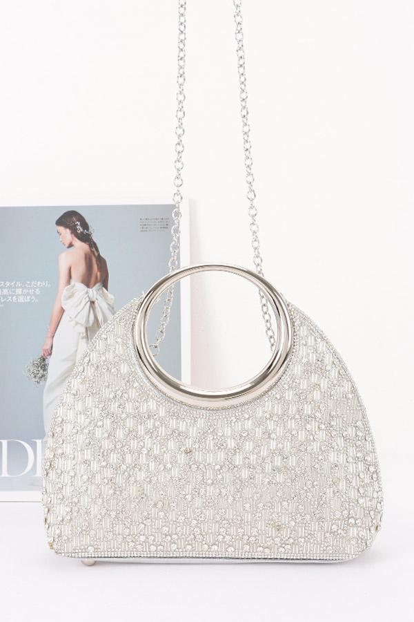 - * This Rhinestone Party Bag from H&D Accessories features a densely embellished rhinestone design, paired with a circular handle and a chain crossbody strap. It has a sparkling, luxurious appearance, giving off a glamorous and eye-catching vibe.Ideal for carrying small essentials at proms, cocktail parties, or New Year’s events, adding a dazzling touch to evening outfits.