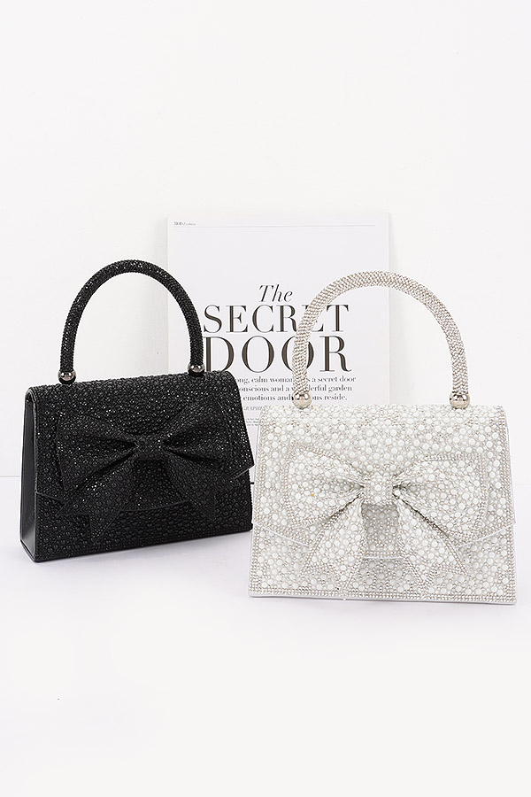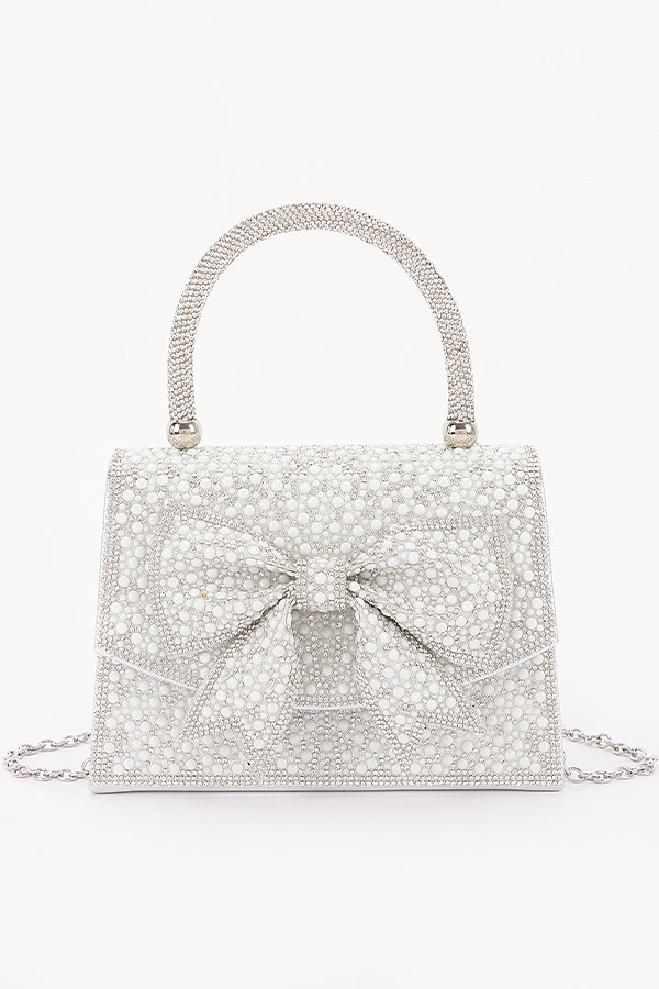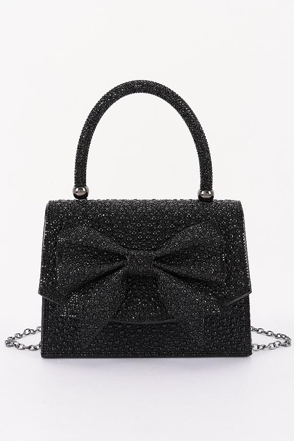 - * This is a Rhinestone Party Bag from H&D Accessories, adorned with sparkling details and a prominent bow accent, plus a top handle and chain strap for flexible carrying. Its glamorous, eye-catching design adds a luxurious touch to outfits. Perfect for evening events like cocktail parties or proms, it holds small essentials while elevating dressy ensembles. Elegant and dazzling, it’s a standout accessory for formal, celebratory occasions.