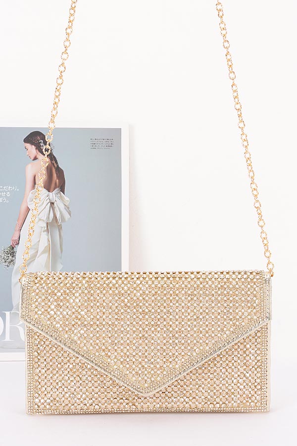 - * This is a Rhinestone Envelope Clutch from H&D Accessories. It features a dazzling rhinestone-encrusted envelope design with a delicate chain strap, radiating elegance and glamour. This clutch is perfect for adding a sparkling touch to your lookâyou can carry it to a wedding reception to complement a formal gown, bring it to a prom night for a showstopping statement, or take it to a black-tie event to shine with its radiant charm. Its eye-catching design makes it a standout accessory that can effortlessly elevate your style for any special occasion.