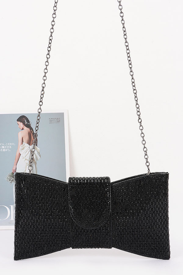 • * This is a Rhinestone Bow Clutch from H&D Accessories. It features a striking bow-shaped design fully encrusted with rhinestones and a delicate chain strap, radiating glamour and sophistication. This clutch is perfect for adding a dazzling touch to your look—you can carry it to a wedding reception to complement a elegant gown, bring it to a prom night for a showstopping statement, or take it to a formal gala to shine with its sparkling charm. Its eye-catching design makes it a standout accessory that can effortlessly elevate your style for any special occasion.