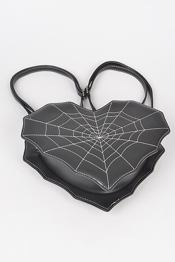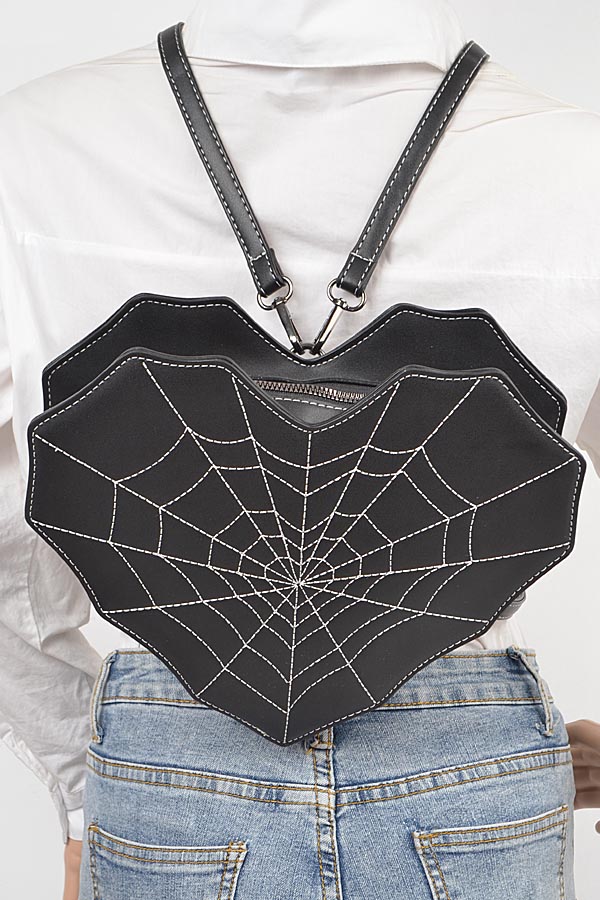 - * This Faux Leather Spider Web Bag Pack from H&D Accessories features a unique heart shape with an intricate spider web design and an adjustable strap. It has a distinctive and stylish appearance, giving off a trendy and edgy vibe.Ideal for carrying essentials at Halloween parties or trick - or - treating, complementing spooky and gothic - themed outfits.