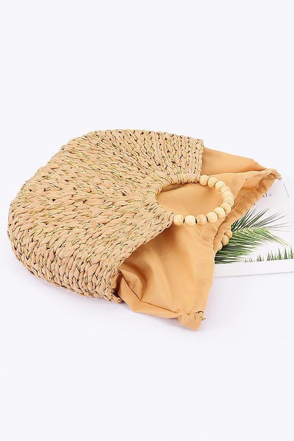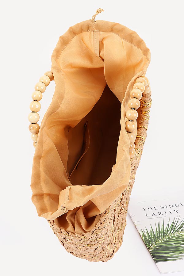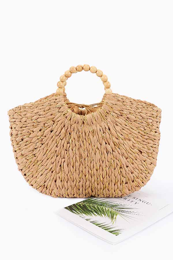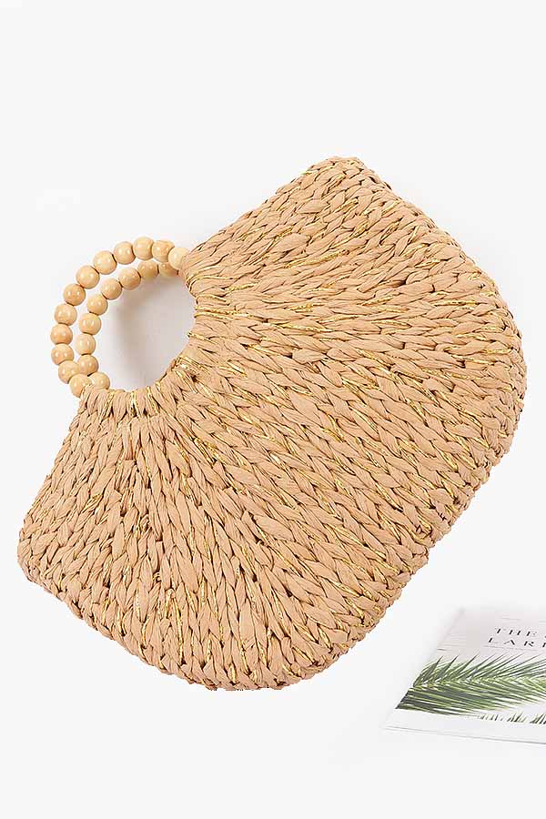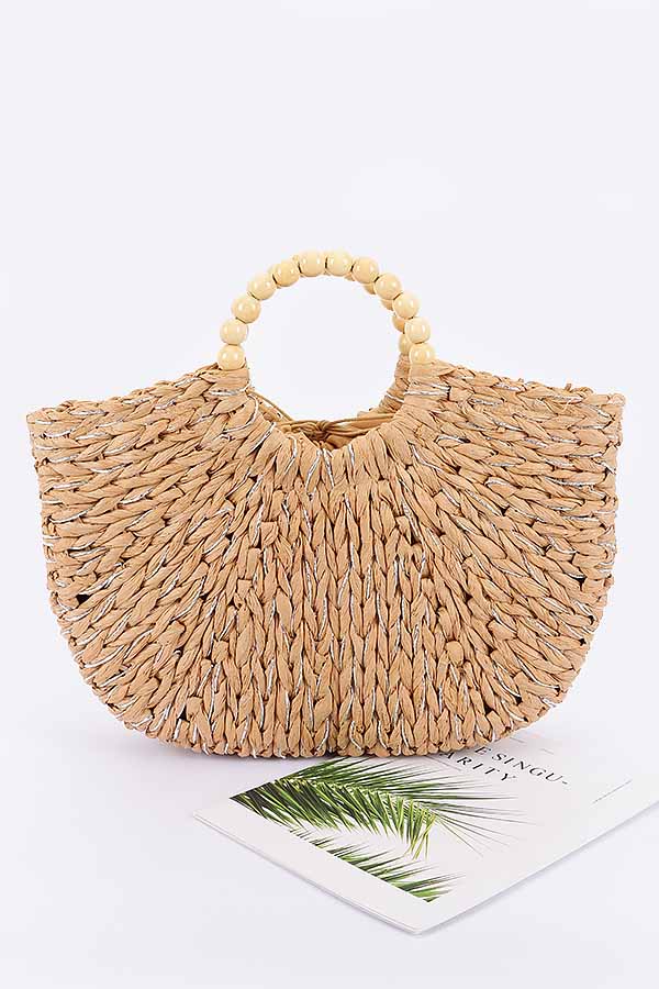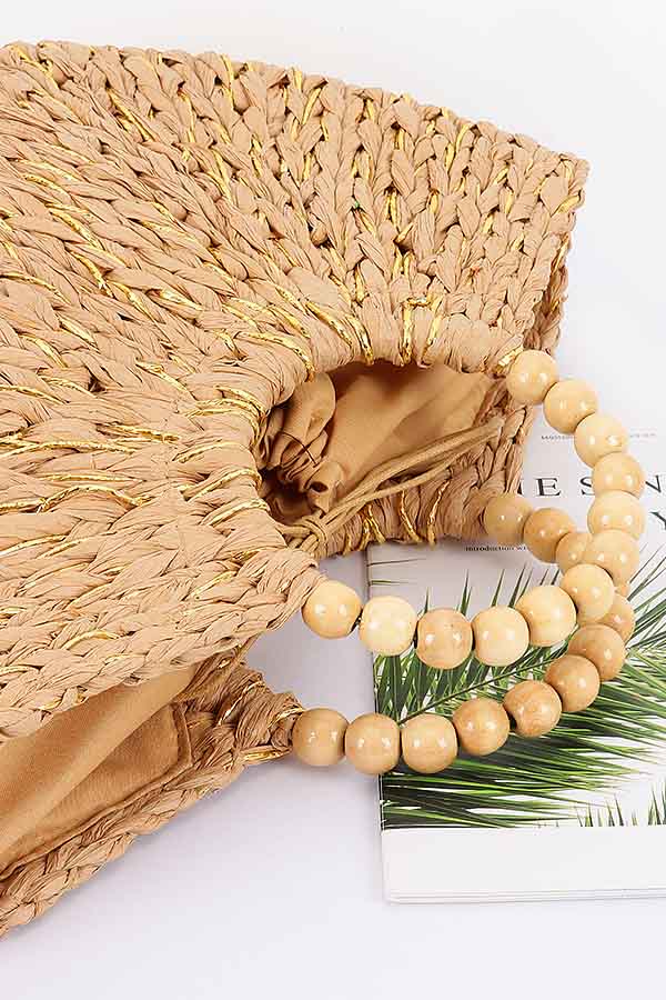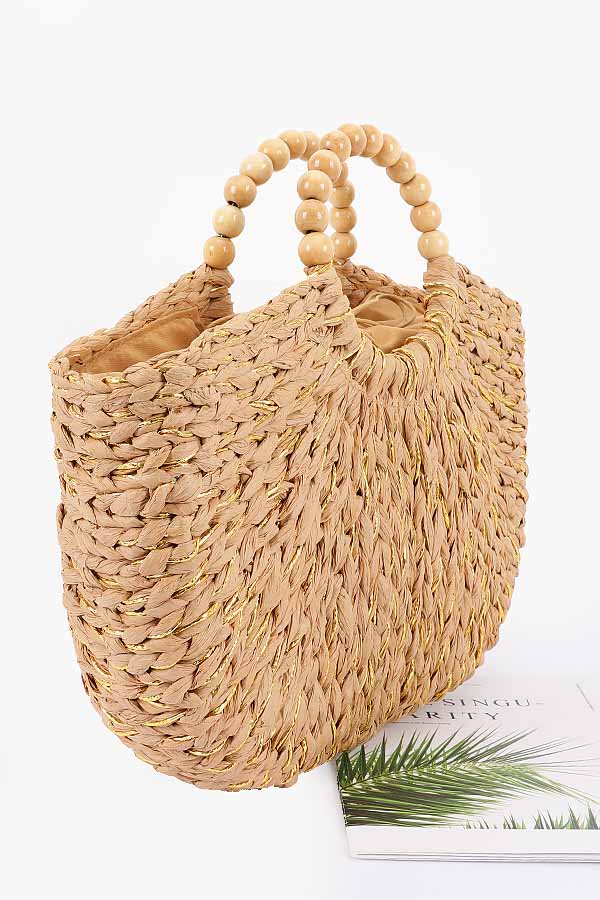 - * Handmade Faux Straw Wood Beads Handle Tote Bag