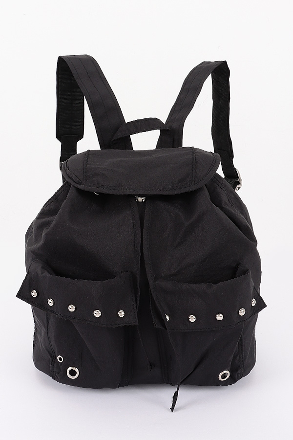 - * Nylon Cargo Backpack from H&D Accessories features a functional design with multiple pockets. It has a drawstring closure with a flap for secure storage, and the front boasts two cargo - style pockets adorned with metal studs for an edgy touch. Equipped with adjustable shoulder straps and a top handle, it offers comfortable carrying options. The spacious main compartment and additional pockets provide ample room for essentials. Ideal for school days, outdoor adventures, or daily commutes, this backpack combines utility with stylish detailing.