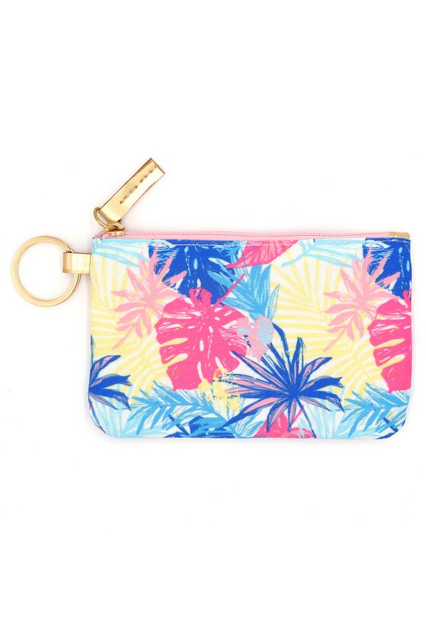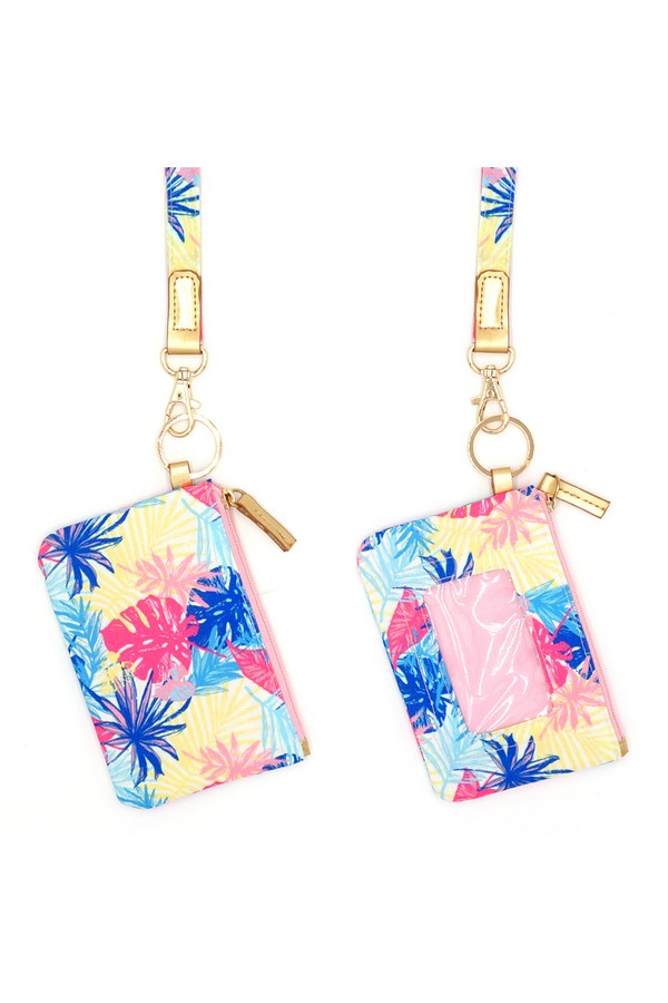 - * HAND DRAWN COLORFUL TROPICAL LEAVES ID WALLET & DETACHABLE LANYARD
