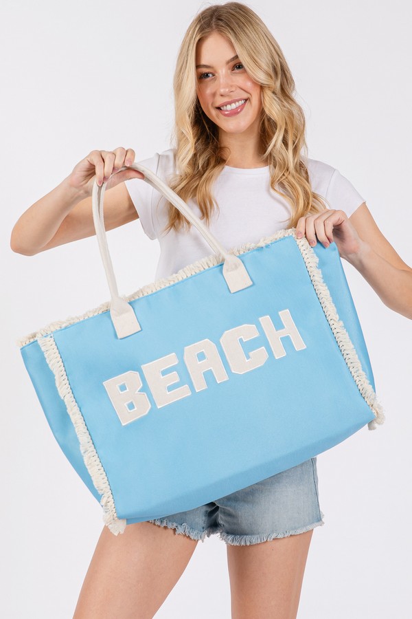 - * EMBROIDERED BEACH LETTER FRINGE TOTE BAG.