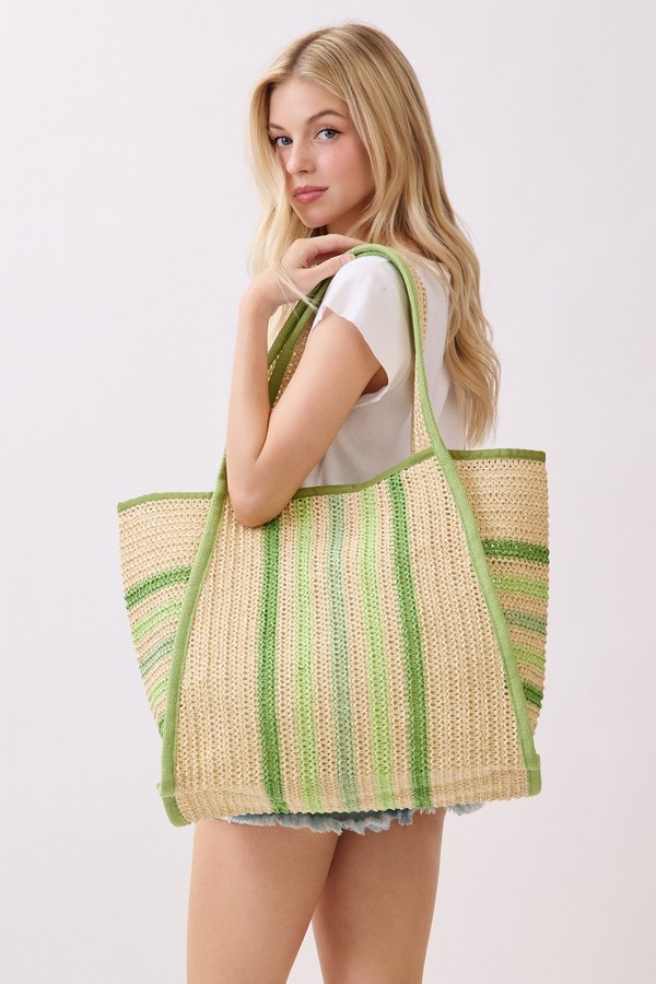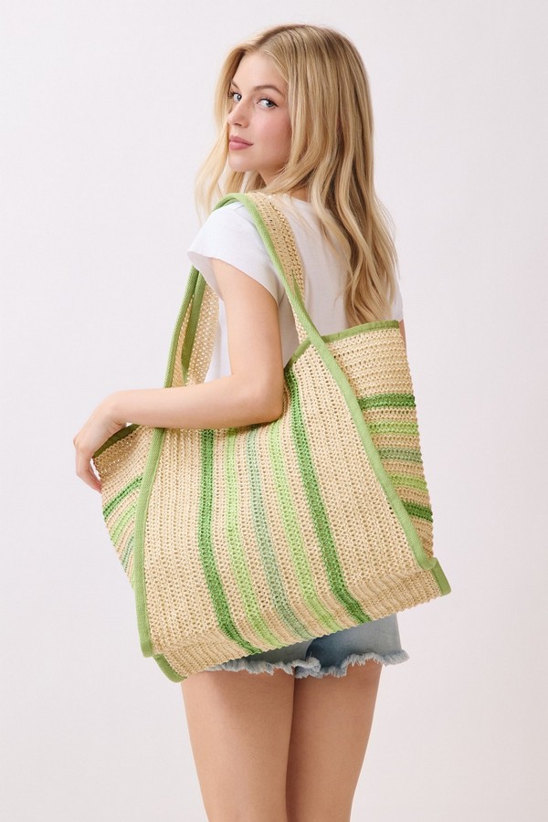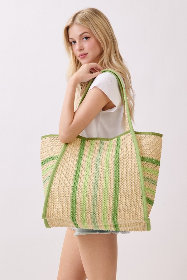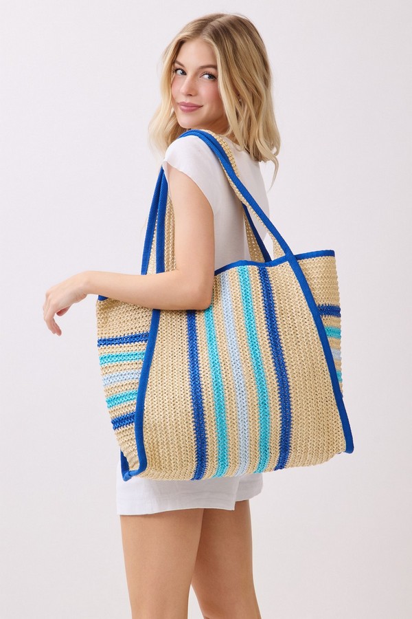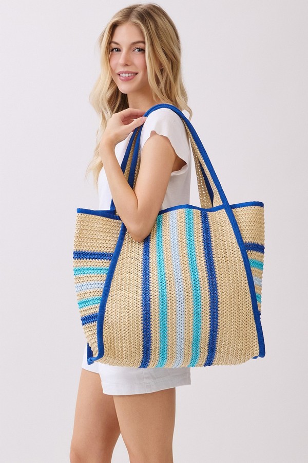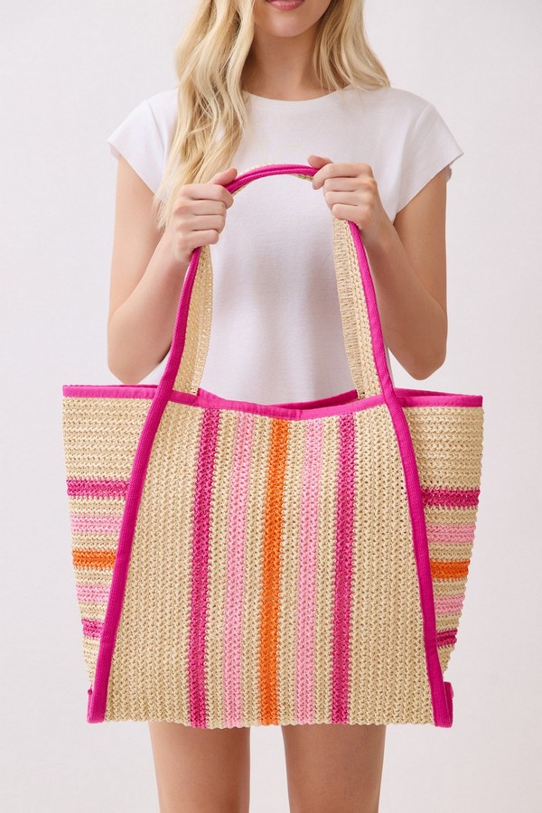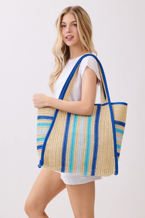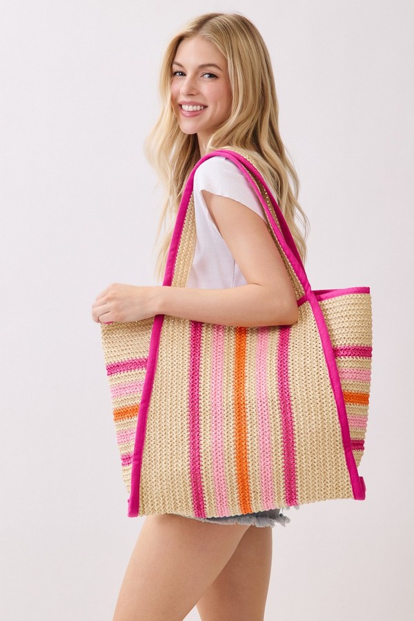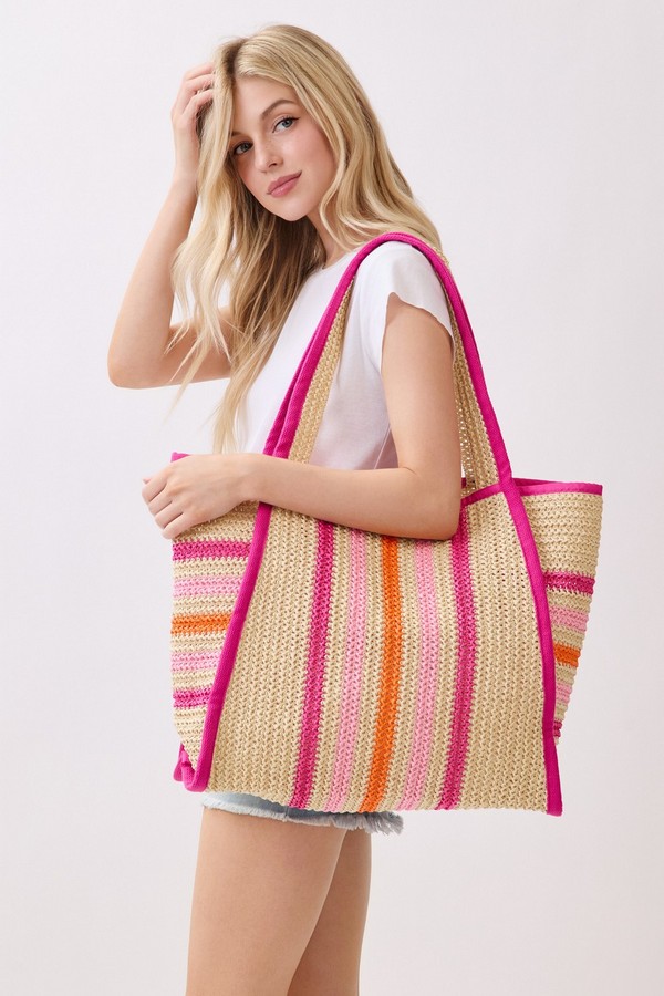 - * This is the Natural Straw Tote With Multi Color Stripes from H&D Accessories. Crafted with a woven straw texture and accented with striped details, it has a lightweight, breezy design that fits well with warm-weather vibes. It’s perfect for a weekend market trip, where you can carry fresh produce, a small notebook, and a reusable water bottle, or for a casual coastal walk—its spacious interior and relaxed style make it easy to bring along essentials while complementing casual summer outfits.