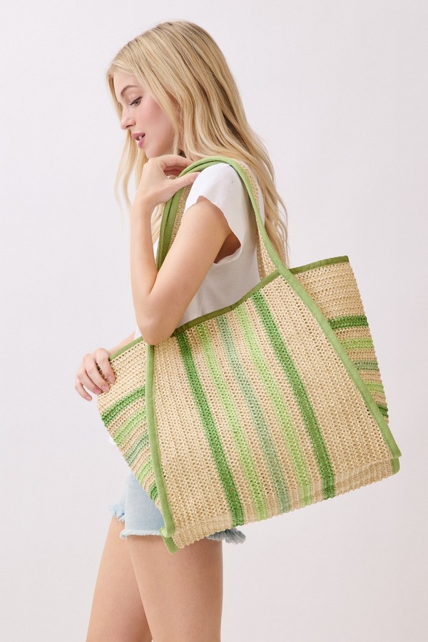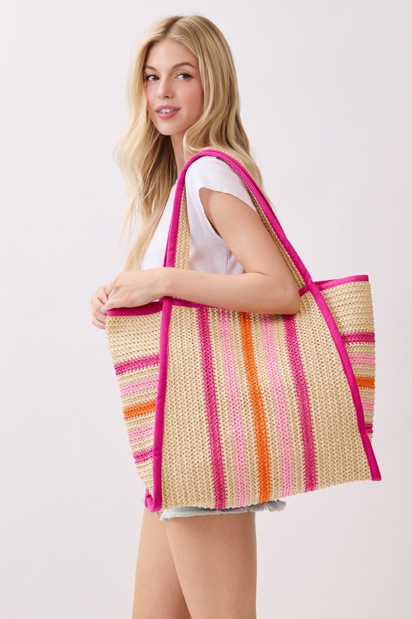 - * Natural Straw Tote With Multi Color Stripes