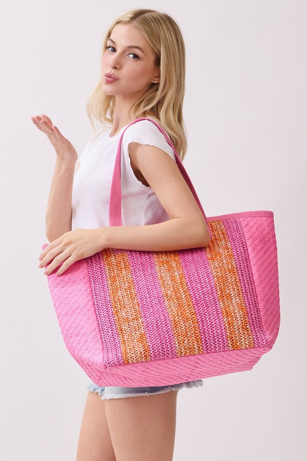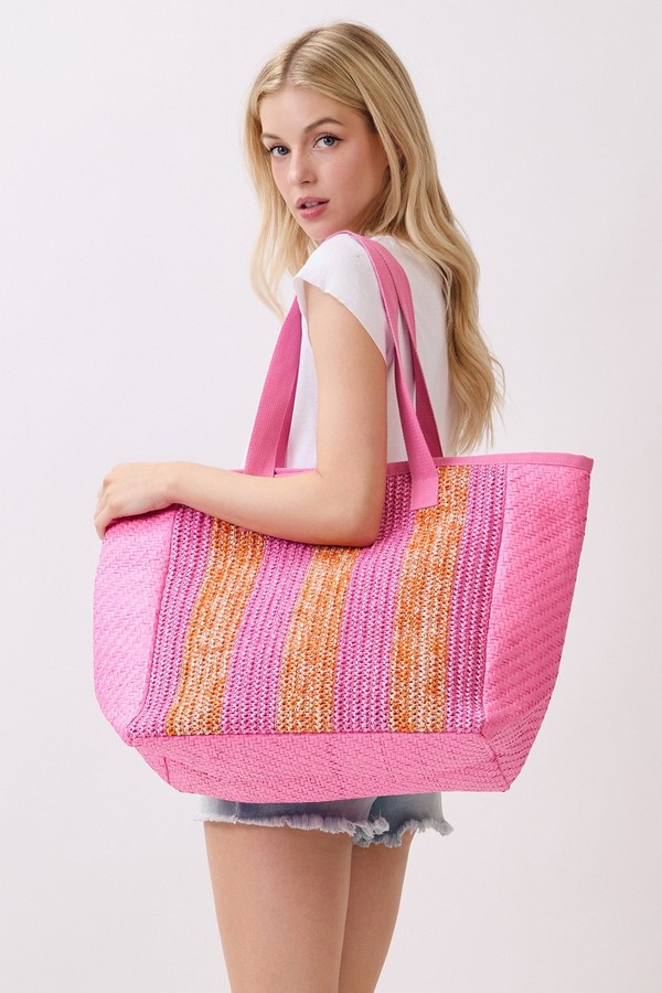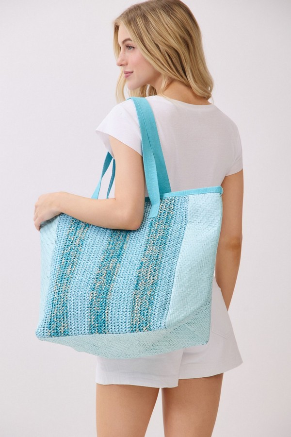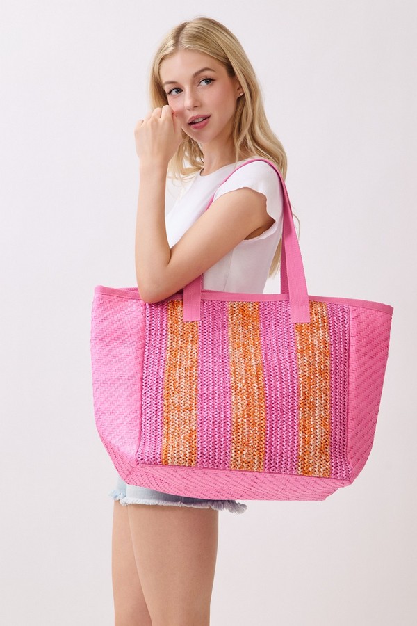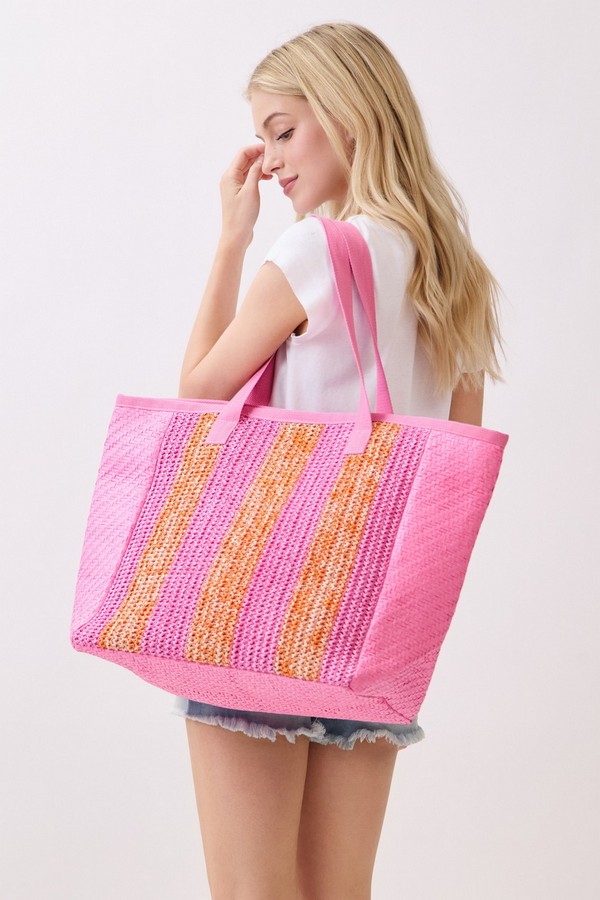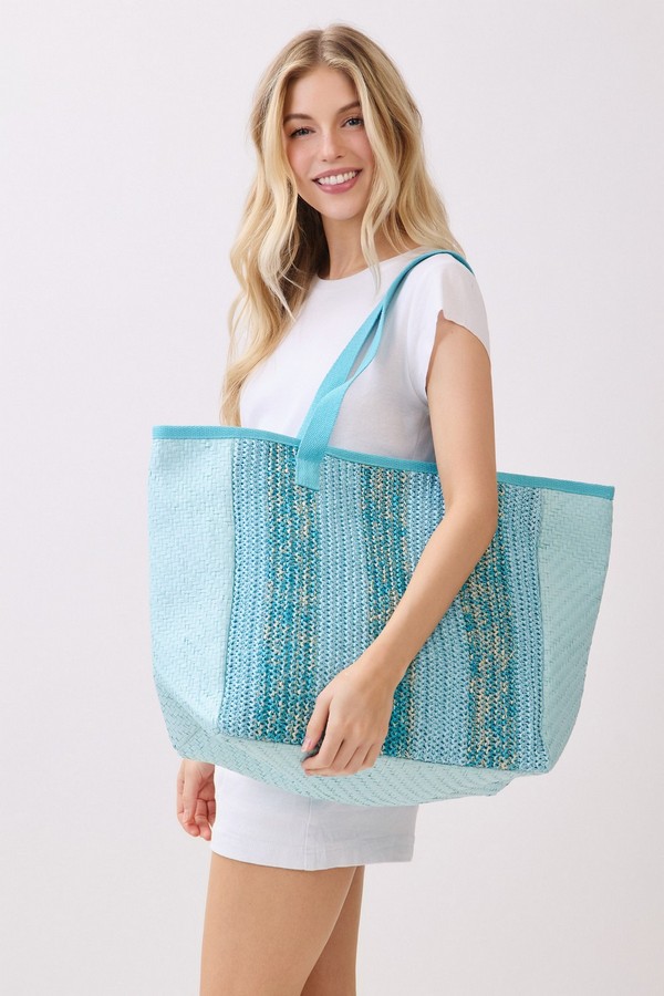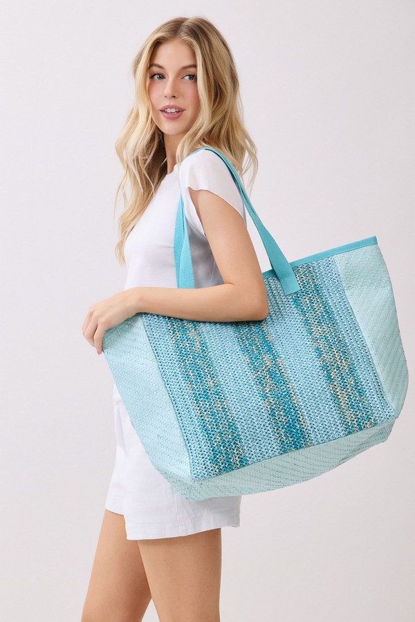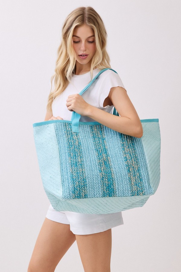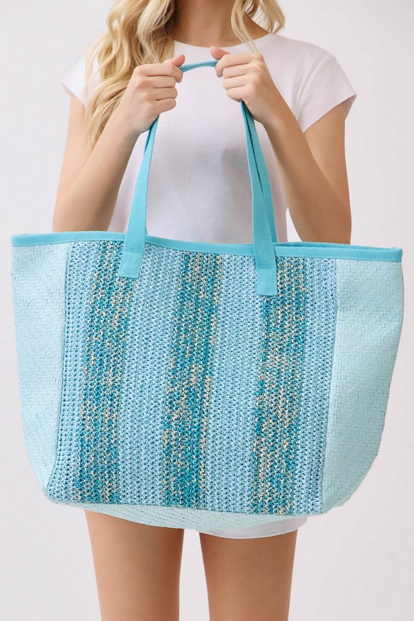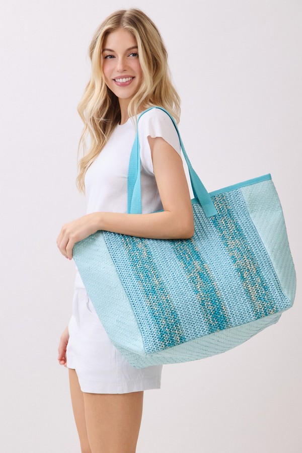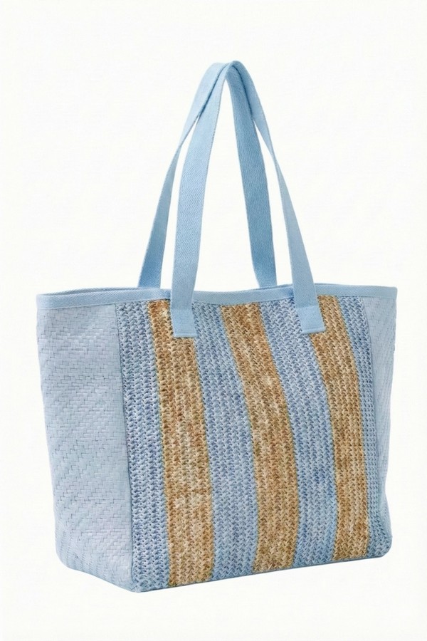 - * This is the Nautical Stripe Tote Bag from H&D Accessories. It features a textured woven design with stripe details and smooth handles, giving it a fresh, relaxed vibe. It’s ideal for a day at a lakeside getaway—you can fit a lightweight cover-up, a reusable water bottle, and a small camera inside, and its roomy, casual style also works well for a coastal boardwalk stroll, letting you carry essentials while complementing laid-back warm-weather outfits.