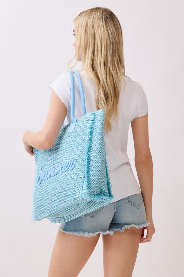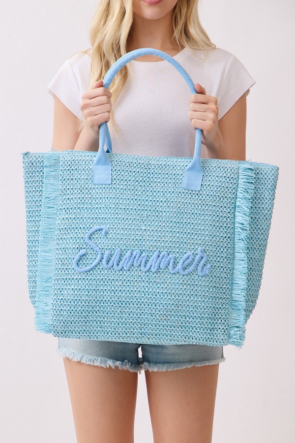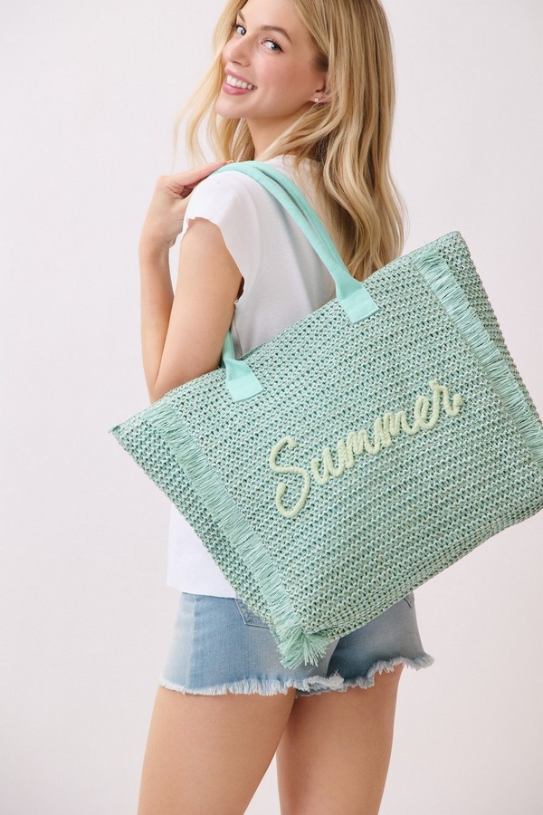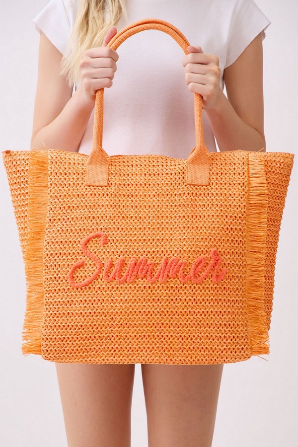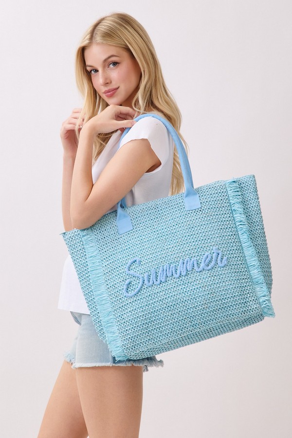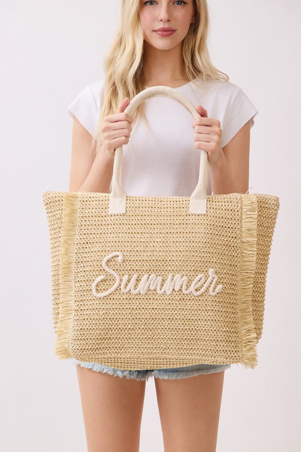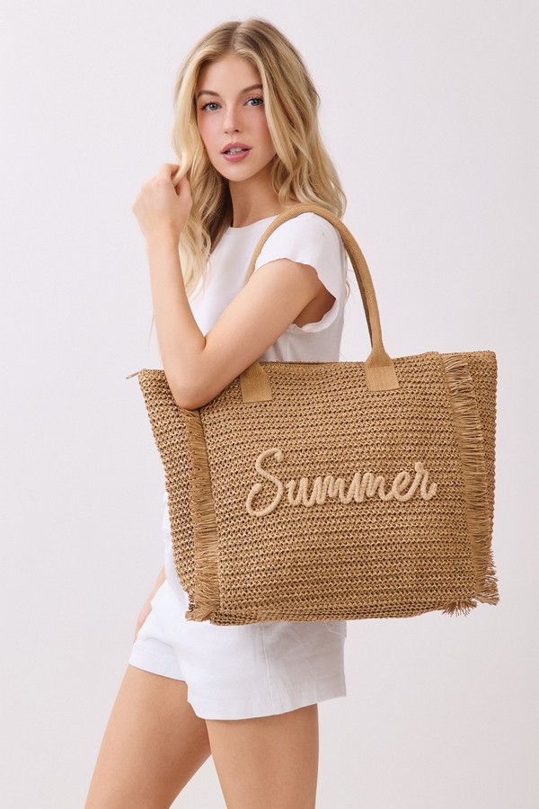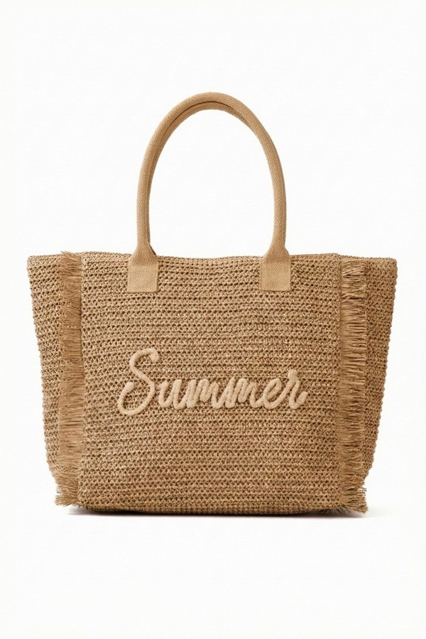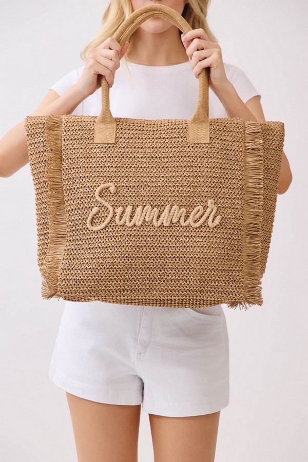 - * This Woven Straw Fringe Tote With Summer Embroidery And Gold Lurex Detail from H&D Accessories features a lightweight, textured construction and playful fringe trim, finished with a delicate “Summer” embroidery on the front. Designed for sunny days out, it offers ample space for your beach essentials, picnic supplies, or weekend shopping finds, making it the perfect companion for casual outings, vacation getaways, and warm-weather adventures.