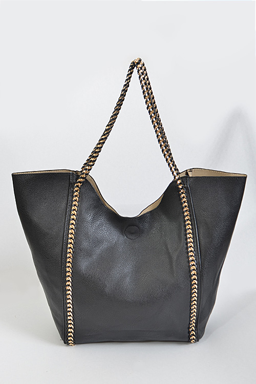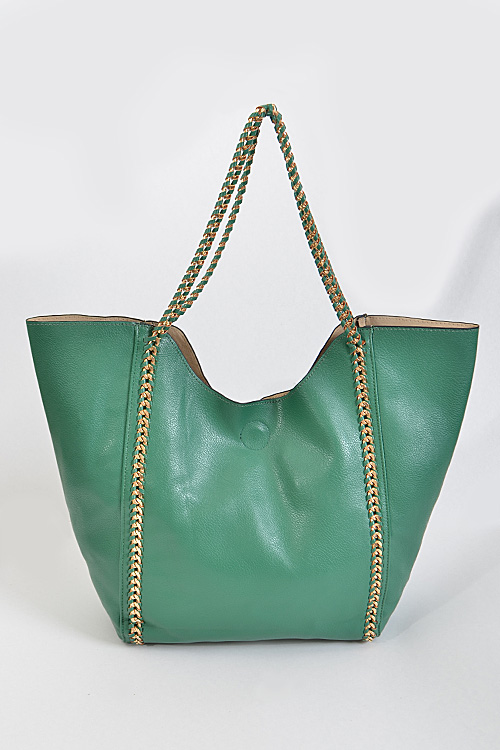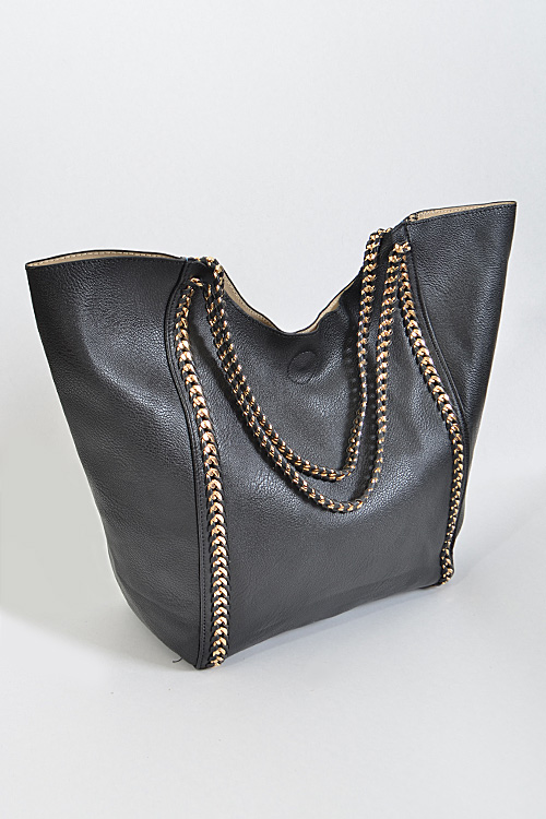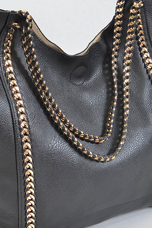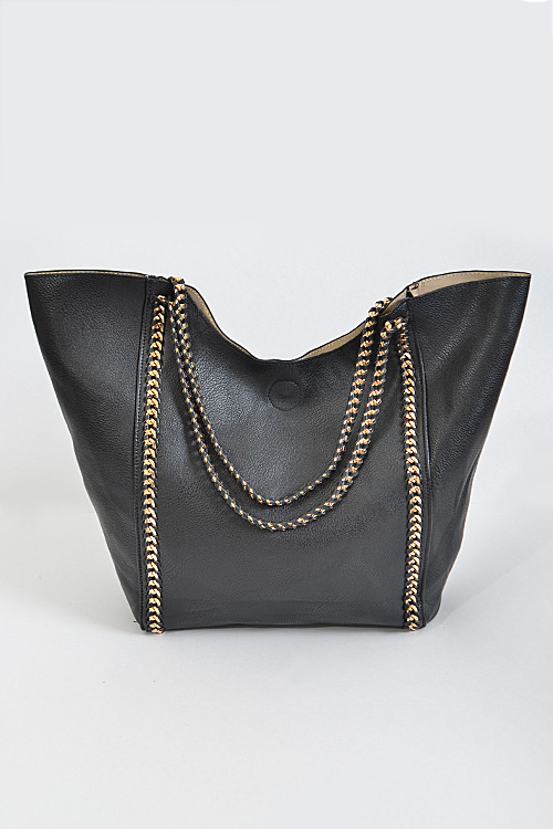 • * Double Side Golden Chain Strapped Handbag * 19W*15H*4D * POLYURETHANE, MIXED MATEL