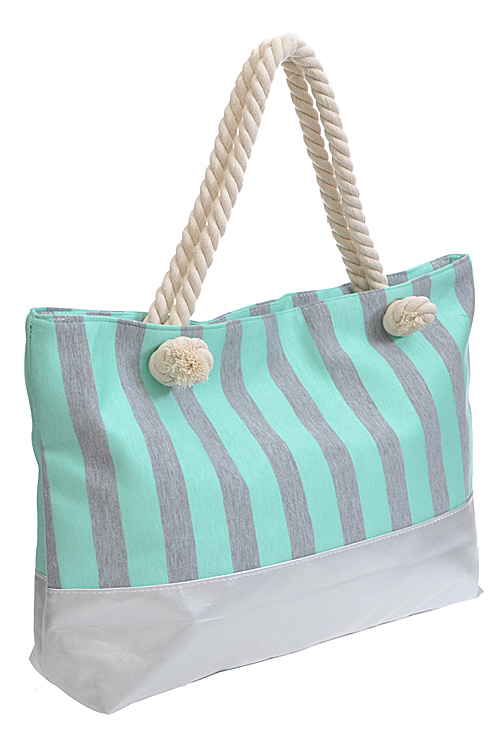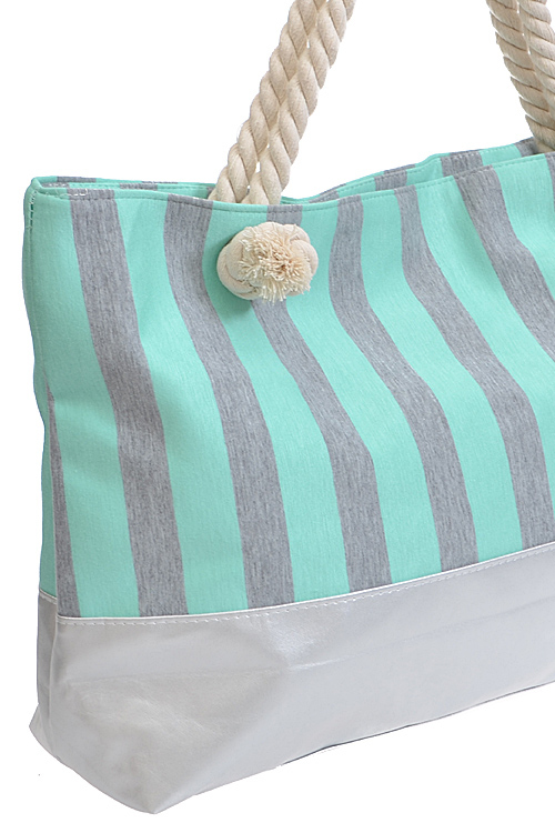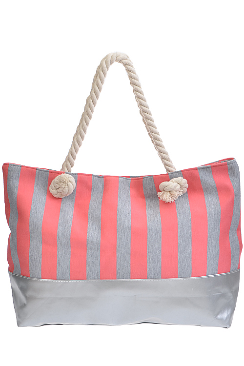 - * Vertical Gray Striped Tote Bag * 20W*13H*4.5D * POLYURETHANE, MIXED MATEL