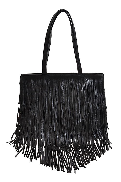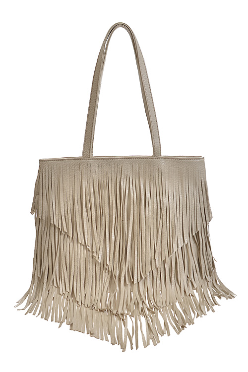 - * Simple And Smooth Fringed Hand Bag * 14.5W*11H*3.25D * Polyurethane, mixed metal