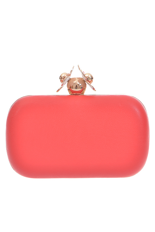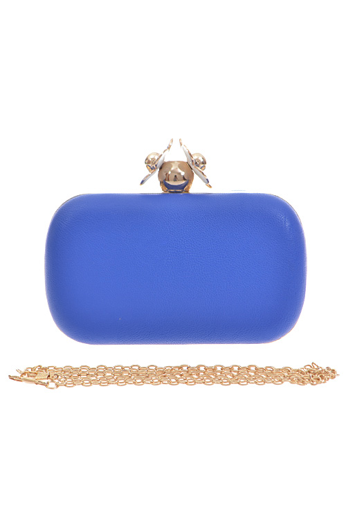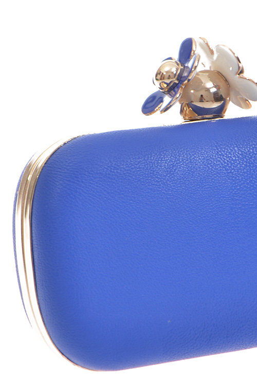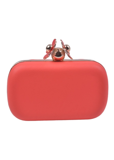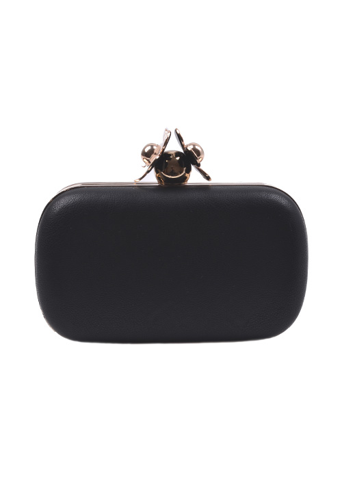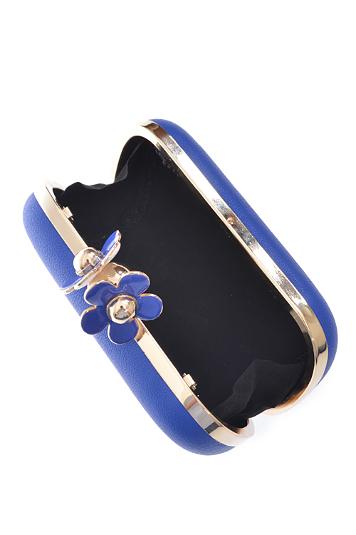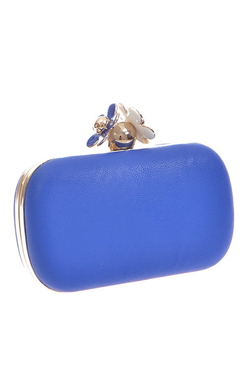 - * Daisy Top Notch Box Clutch * 7W*4H*2D * Polyurethane, mixed metal
