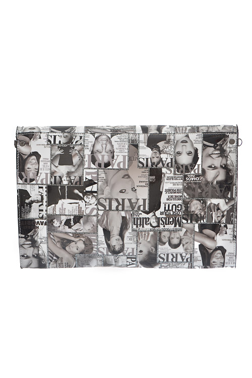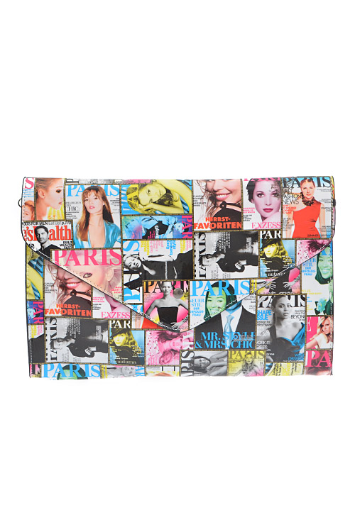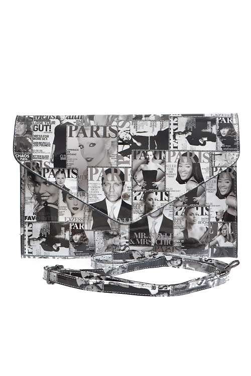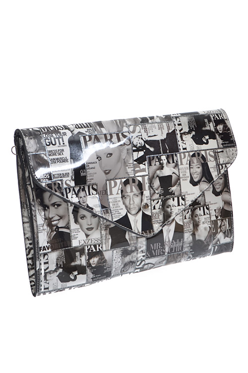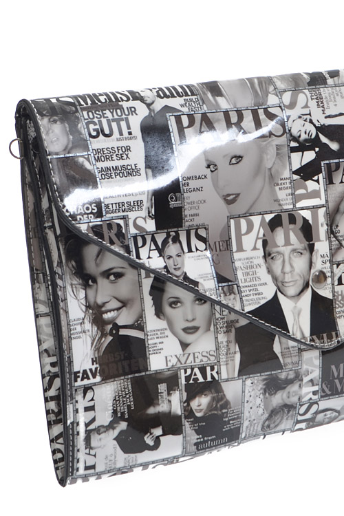 - * Paris Magazine Envelope Clutch * 14W*9.5H*1D * Polyurethane, mixed metal