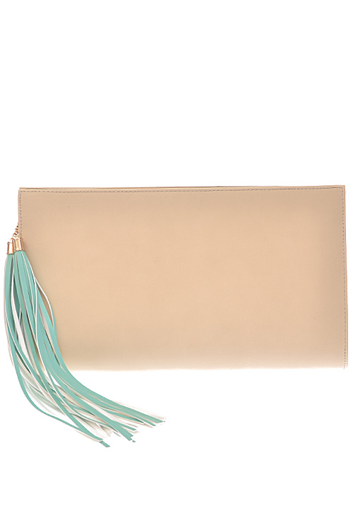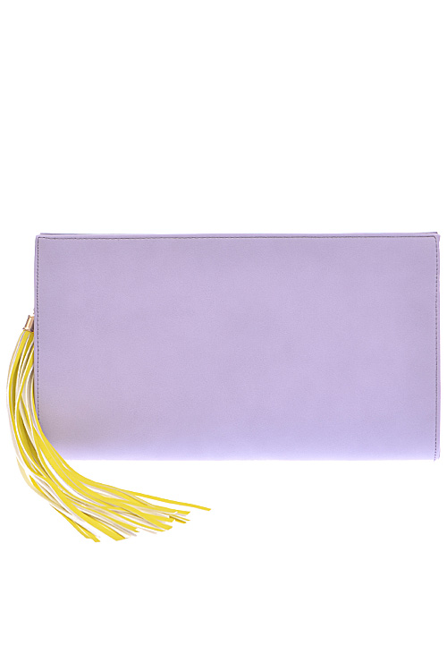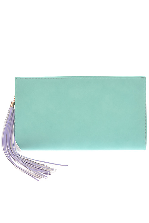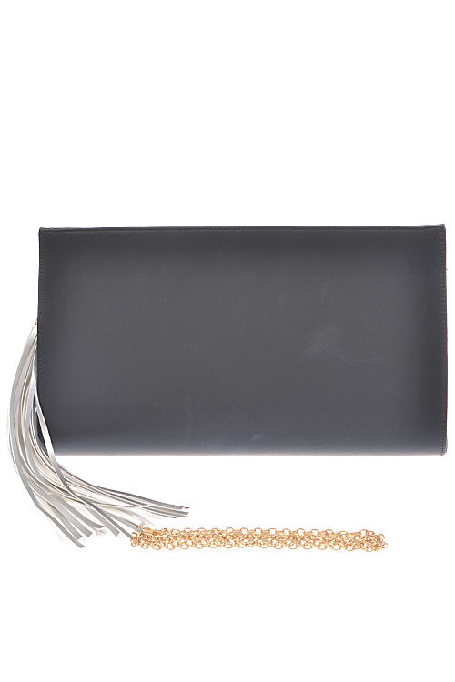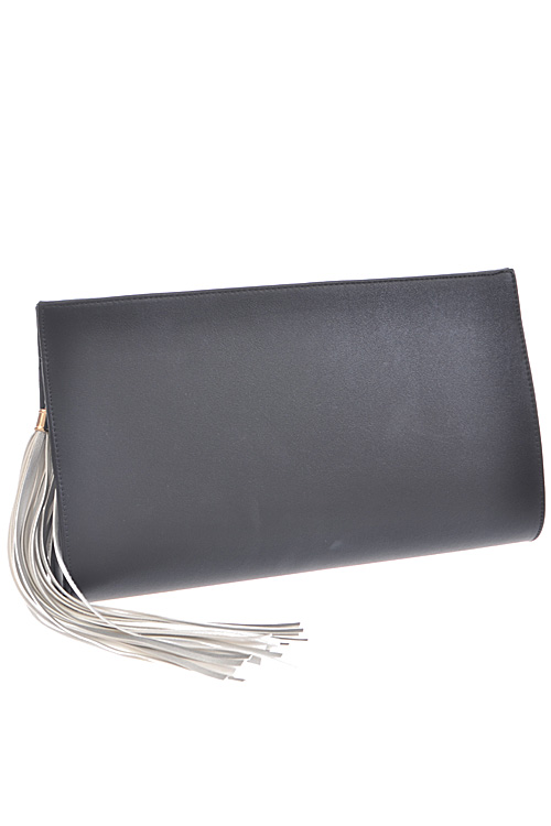 - * Long Fringe Tassel Hanging Clutch * 14.75W*8.5H*2.5D * Polyurethane, mixed metal