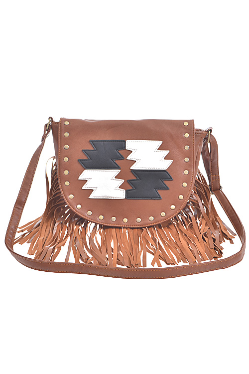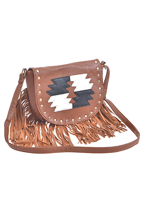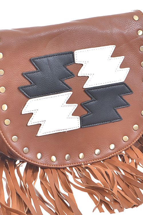 • * Aztec Style Fringed Clutch * 12W*8H*2D * Polyurethane, mixed metal