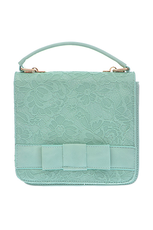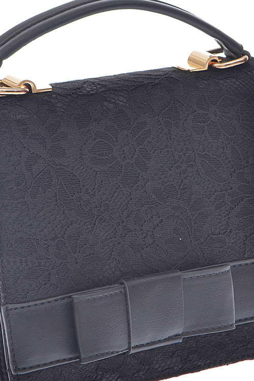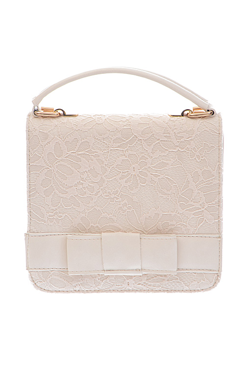 • * Flower Lace Detailed Ribbon Clutch * 8W*7.5H*3.5D * Polyurethane, mixed metal