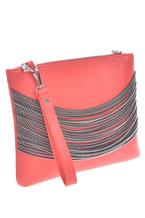 - * Layered Chain Detailed Clutch * 12W*8.5H*0.5D * Polyurethane, mixed metal
