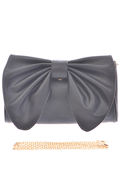 - * Huge Ribbon Flap Closure Feminine Clutch * 11W*6.5H*2.5D * Polyurethane, mixed metal