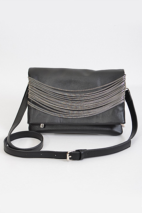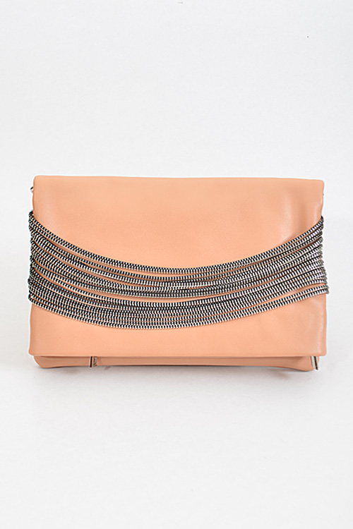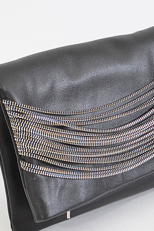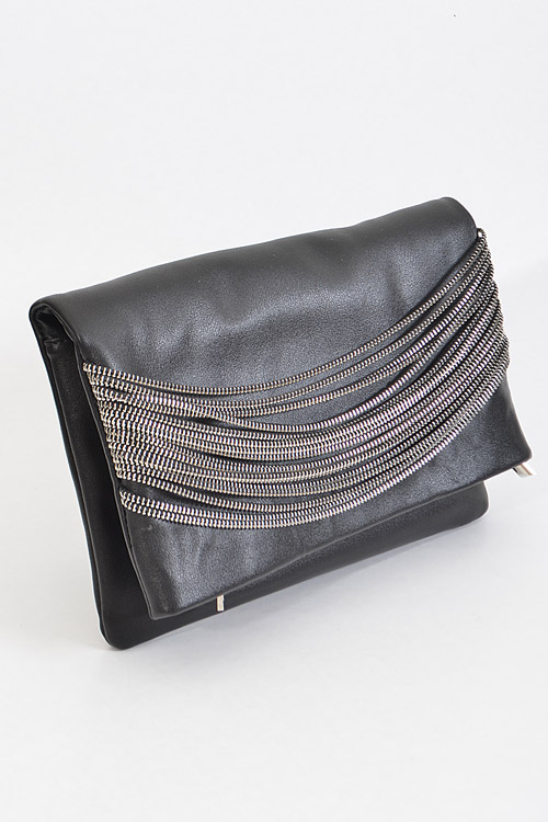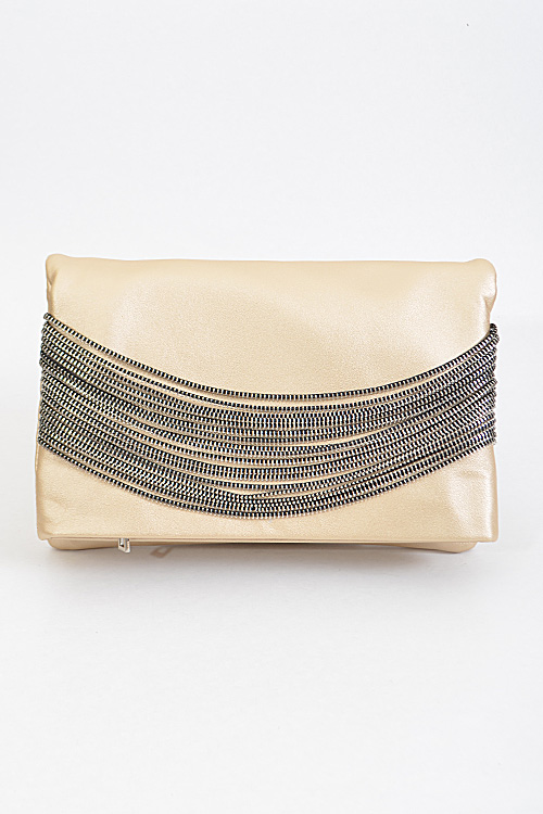 - * Chain Detailed Flip Over Clutch * 11W*8.5H * Polyurethane, mixed metal