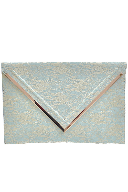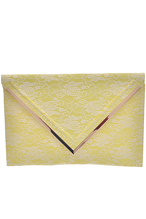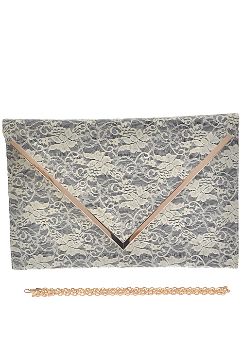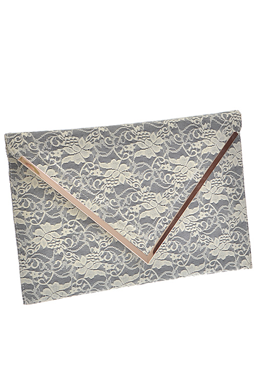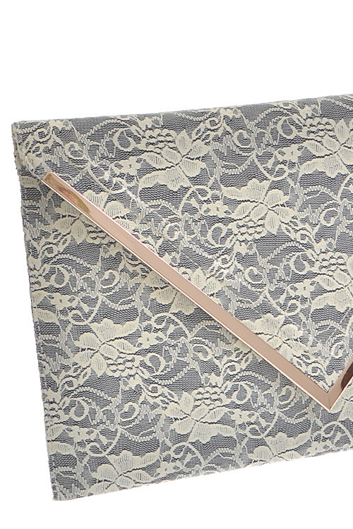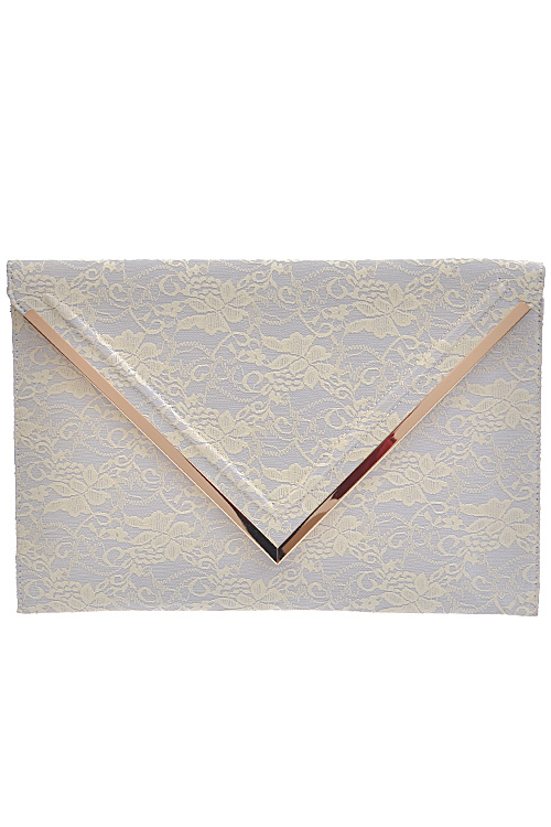 - * Flower Laced V Golden Envelope Clutch * 15W*10H * Polyurethane, mixed metal