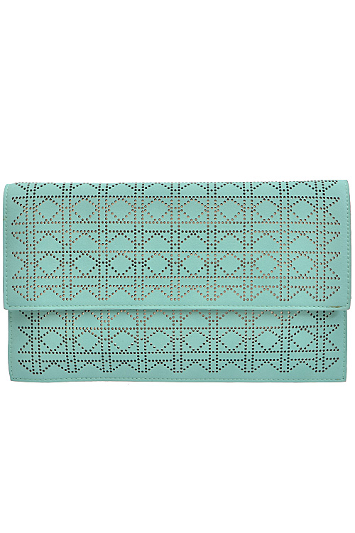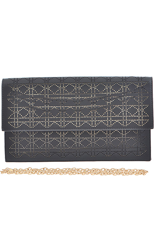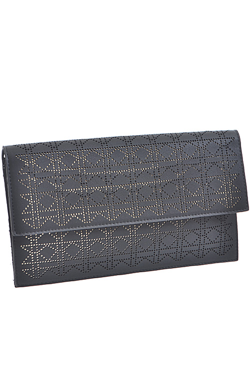 - * Print Dot Cutout Design Flap Clutch * 11.5W*7H*0.5D * Polyurethane, mixed metal