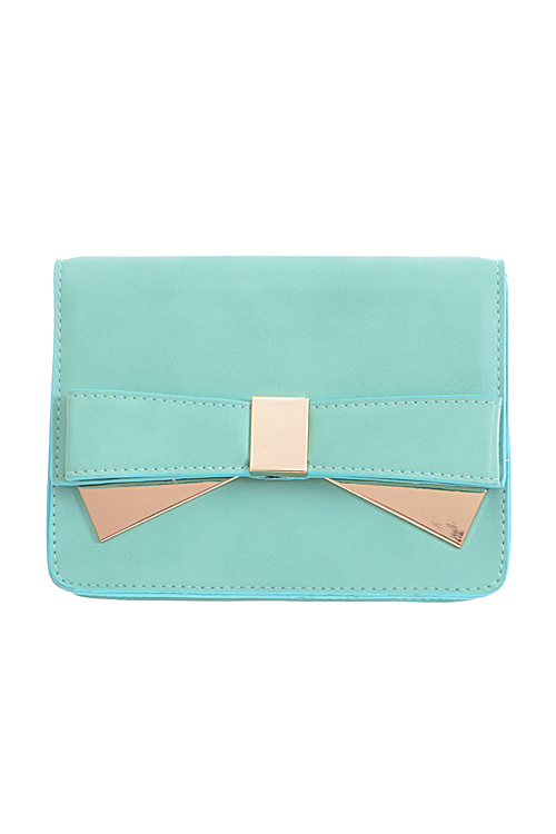 - * Golden Edge Detailed Ribbon Clutch * 8W*6H*2.5D * Polyurethane, mixed metal