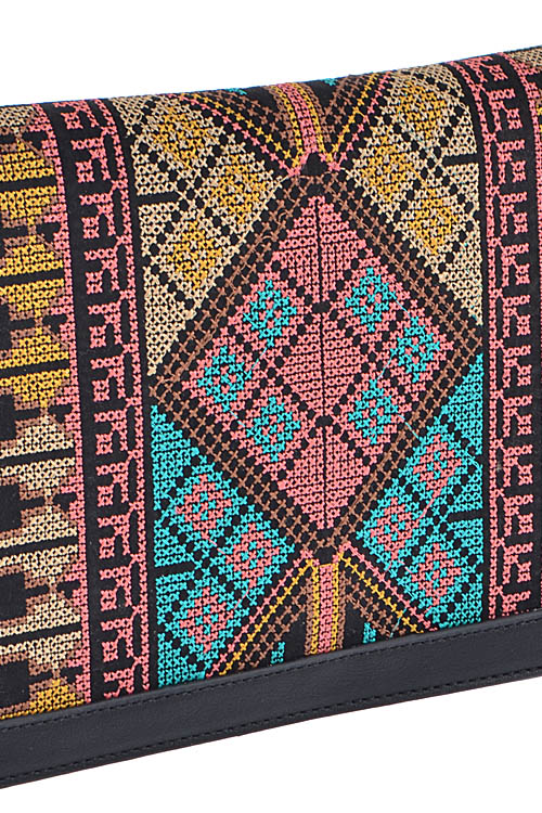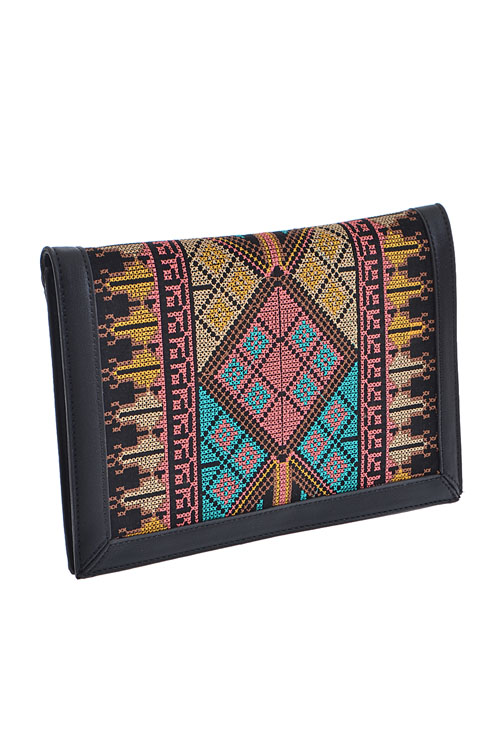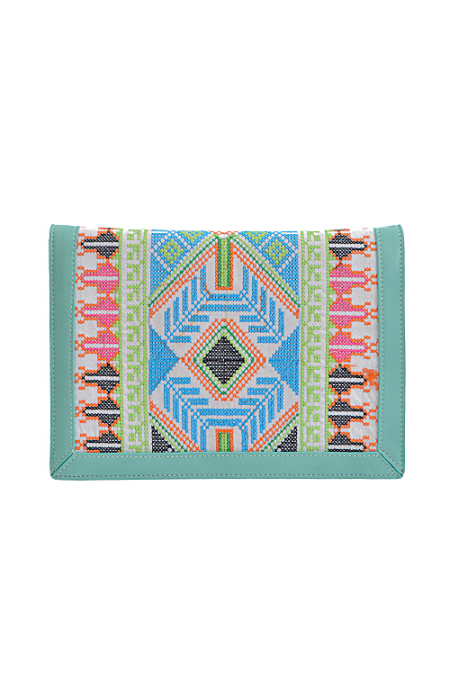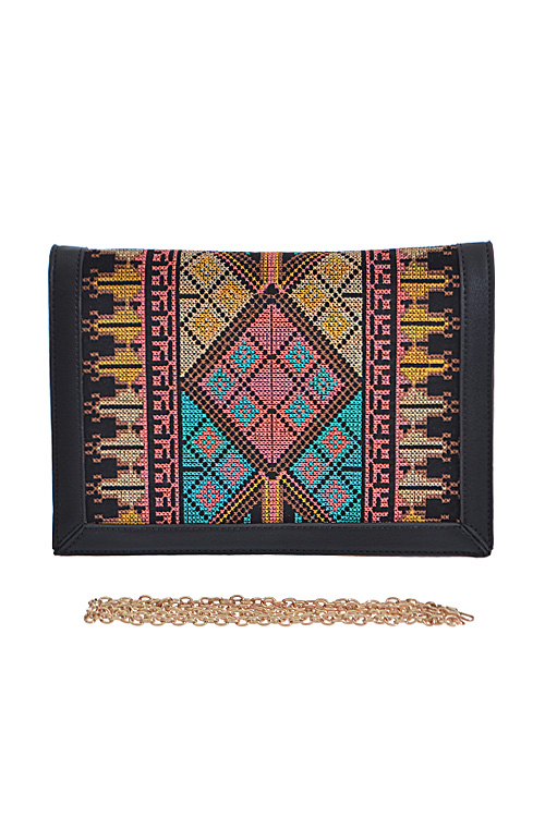 - * Multi Color Pattern Clutch * 10.5W*7.5H*1D * Polyurethane, mixed metal