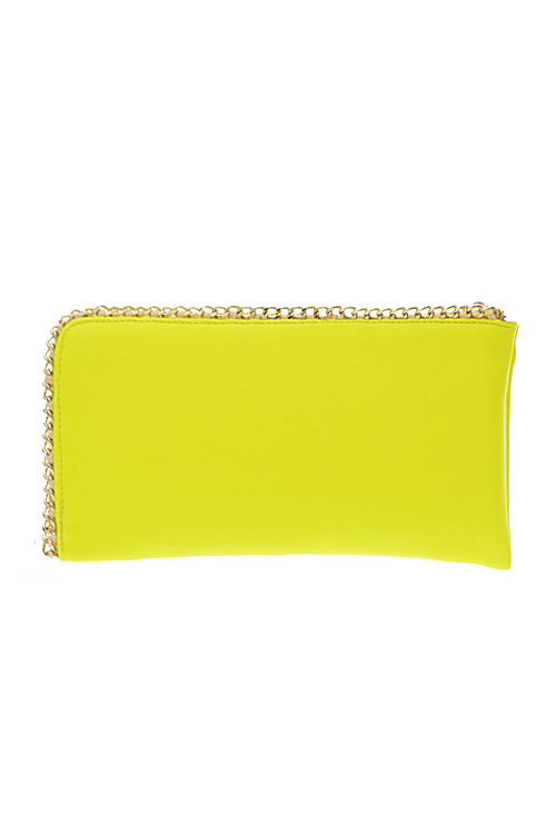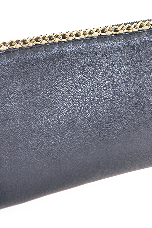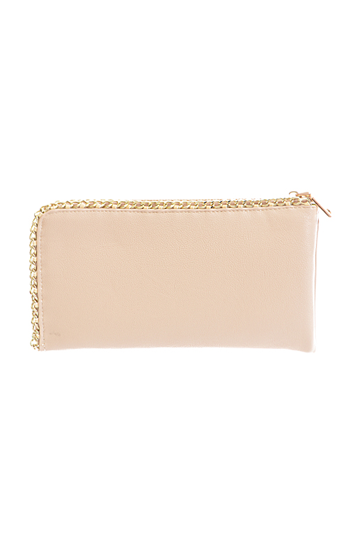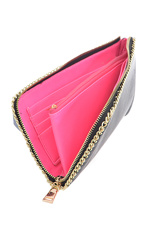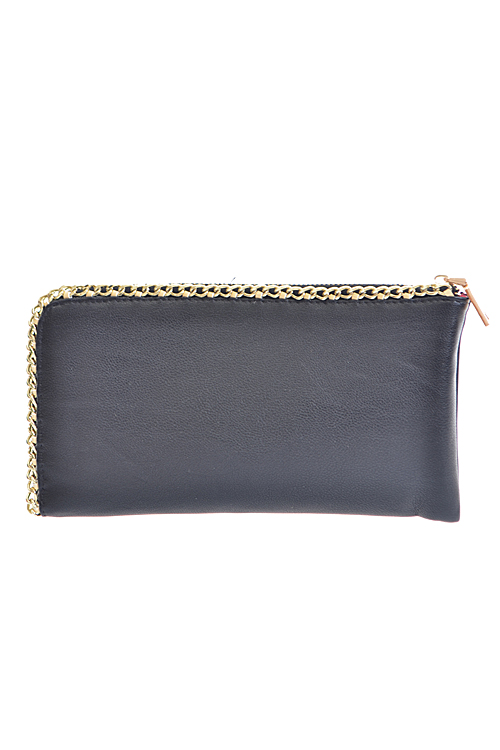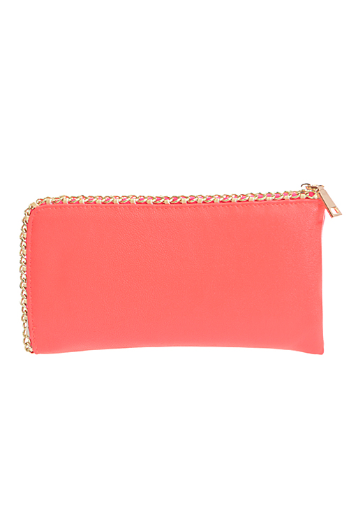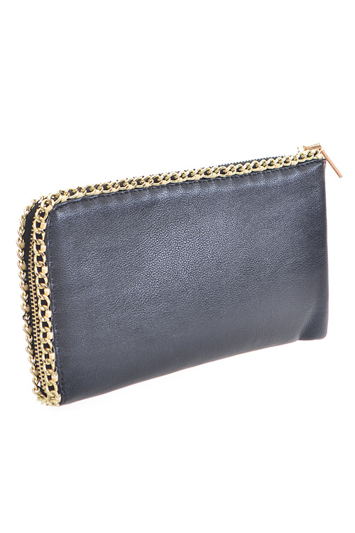 - * Chain Edge Detailed Zipper Clutch * 9.5W*5H*0.5D * Polyurethane, mixed metal