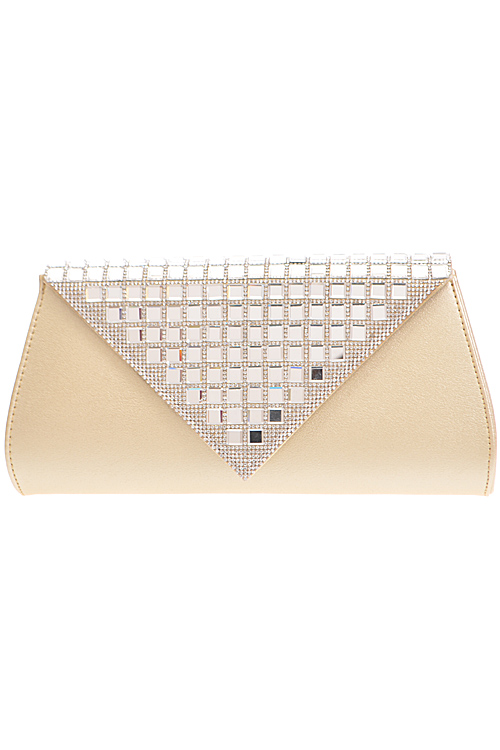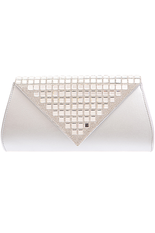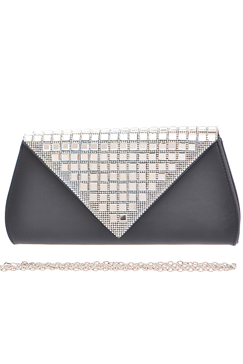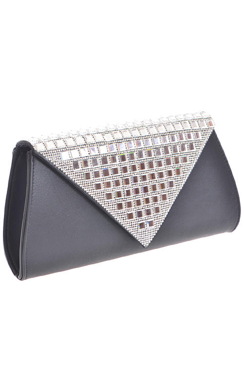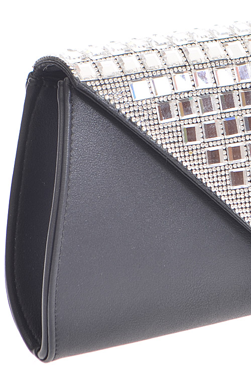 - * V Line Reflective Square Rhinestone Flap Clutch * 12W*6H*2D * Polyurethane, mixed metal