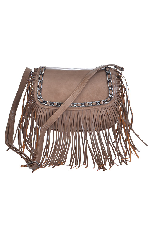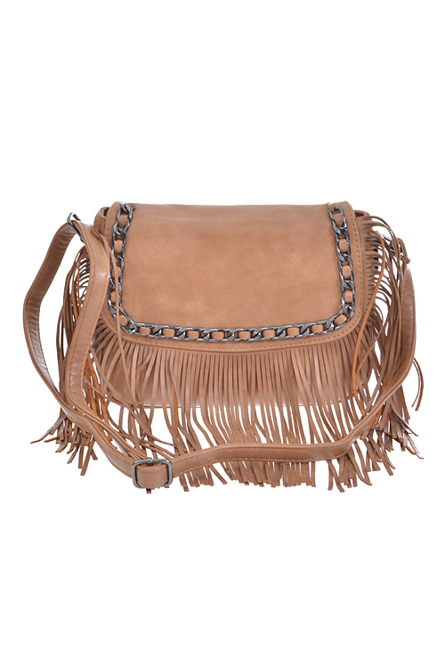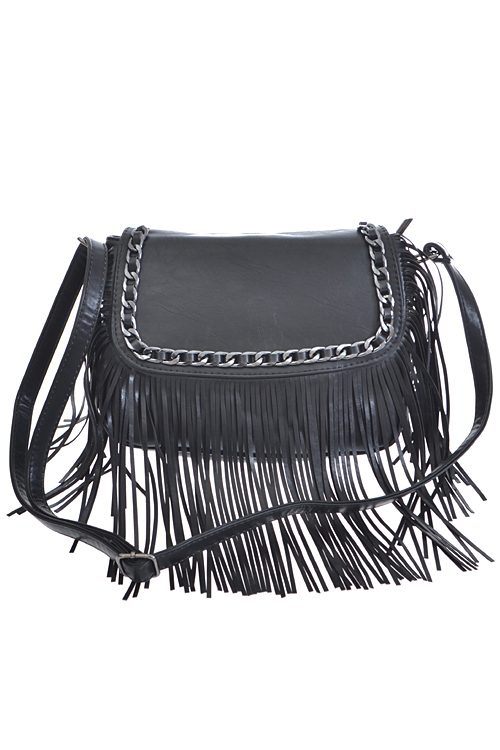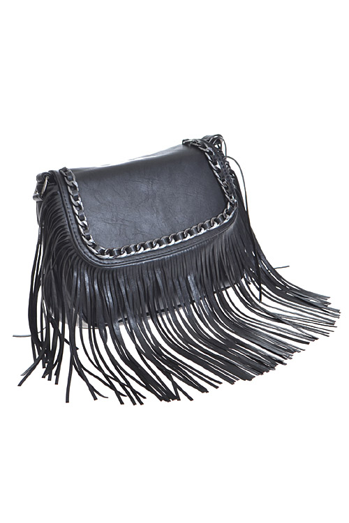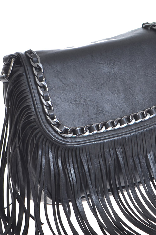 - * Rope Chain Detailed Fringed Clutch * 11W*8.5H*3D * Polyurethane, mixed metal