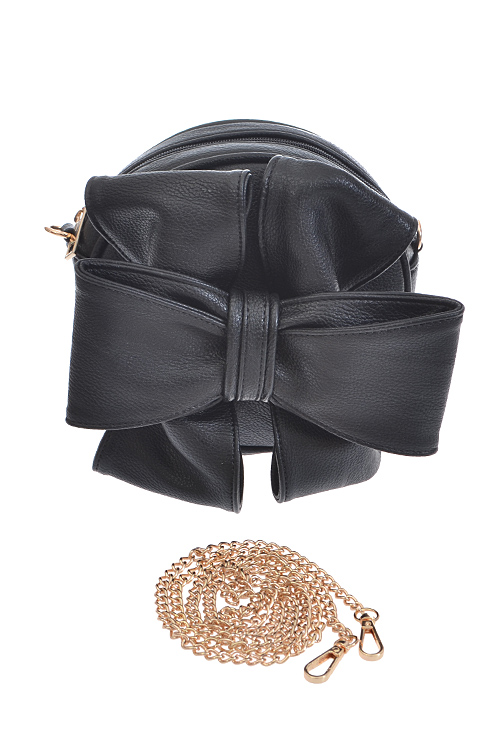 - * Ribbon Tie Faux Leather Chain Strap Clutch * 7.5W*7.5H*2.5D * Polyurethane, mixed metal