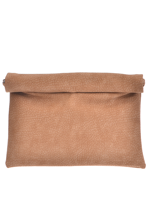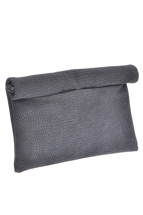 - * Roll Up Faux Leather Clutch * 13.5W*9.5H * Polyurethane, mixed metal
