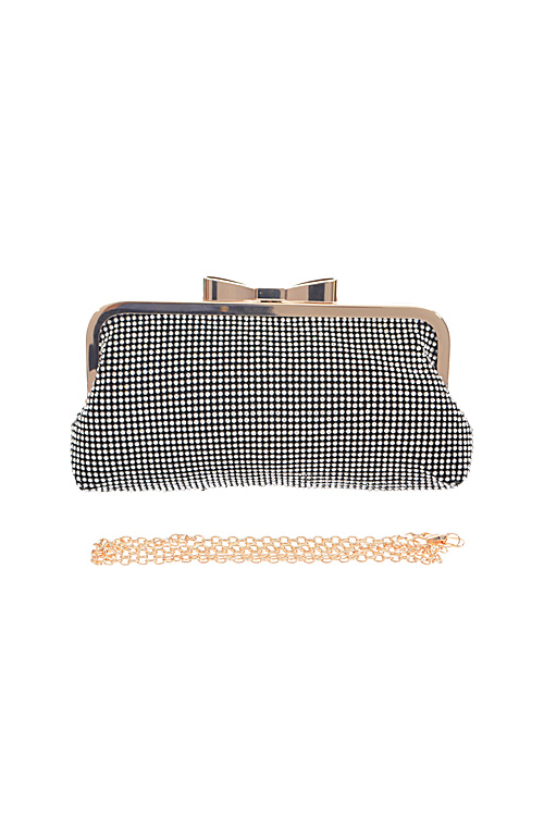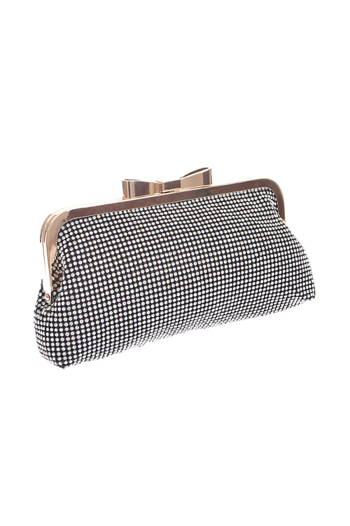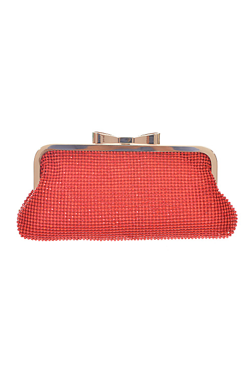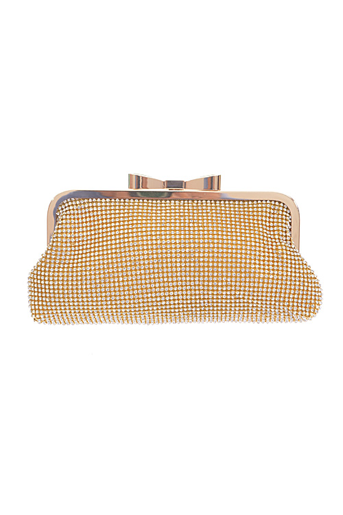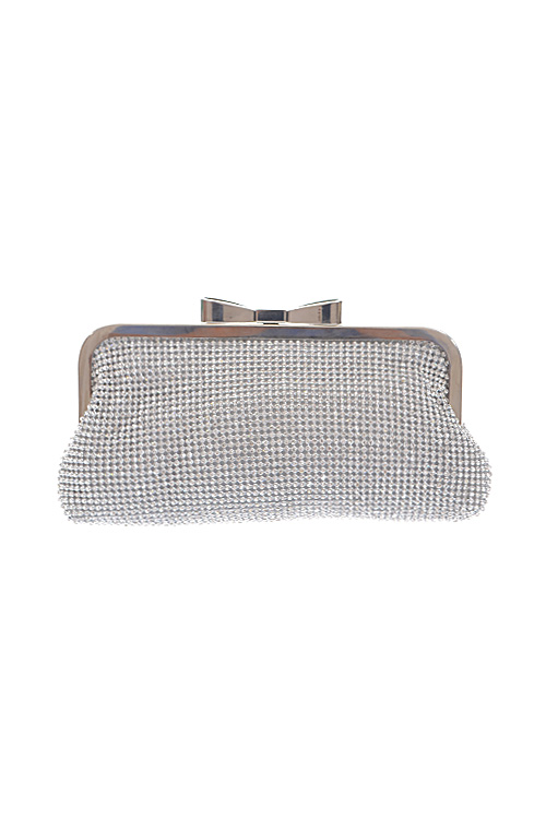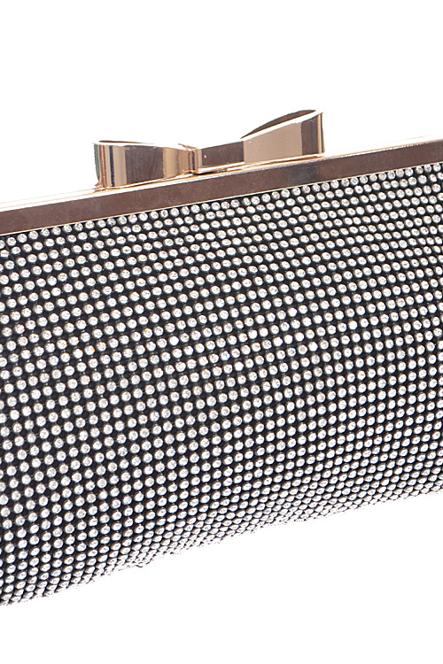 - * All Over Rhinestone Studded Ribbon Clutch * 9W*4.5H*1.25D * Polyurethane, mixed metal