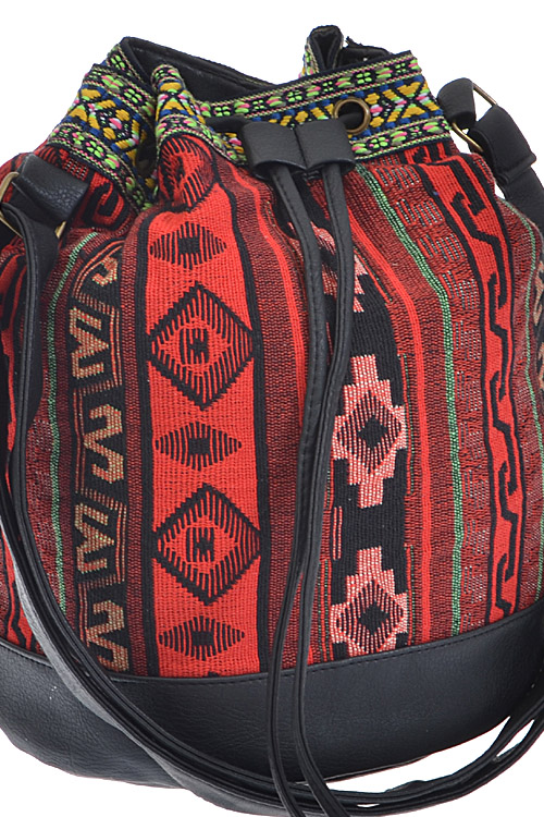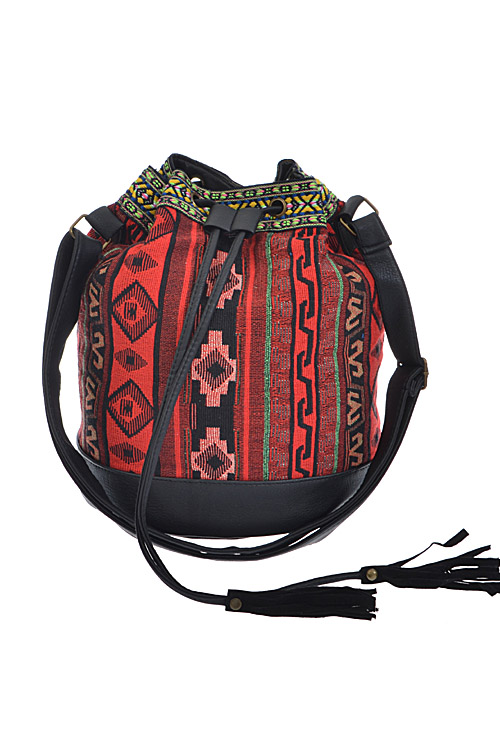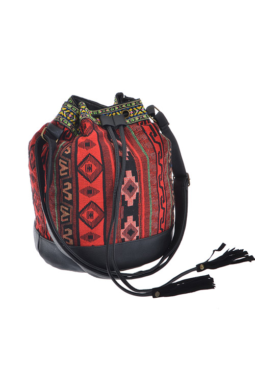 - * Fierce Pattern Striped Bucket Clutch * 14W*11.5H*9D * Polyurethane, mixed metal